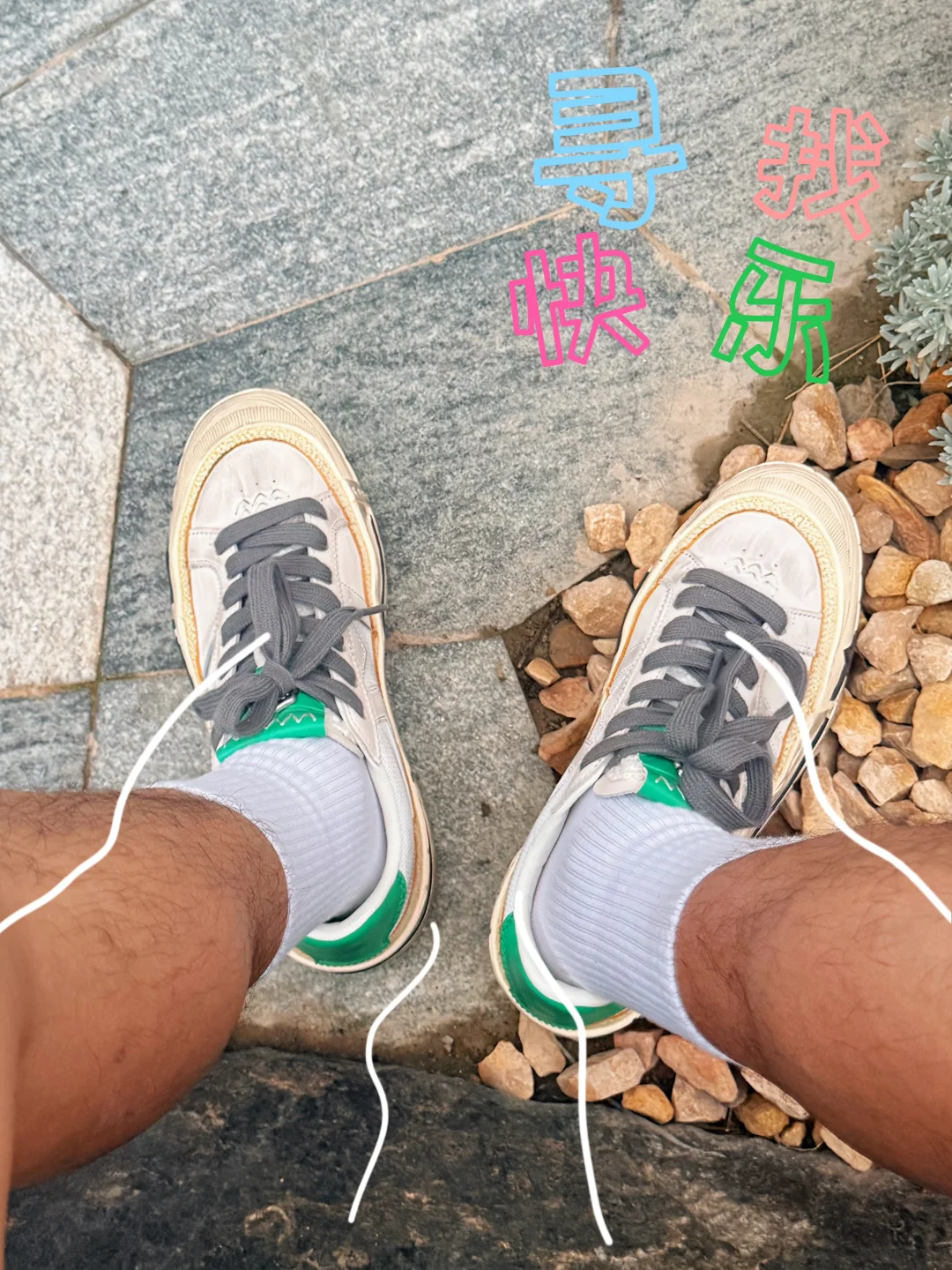 谁说球鞋不能又旧又帅?在深圳这种早晚微凉、白天正好的秋天,我终于找到了骑行+潮酷的完美打开方式——做旧风白拼绿球鞋!🍂