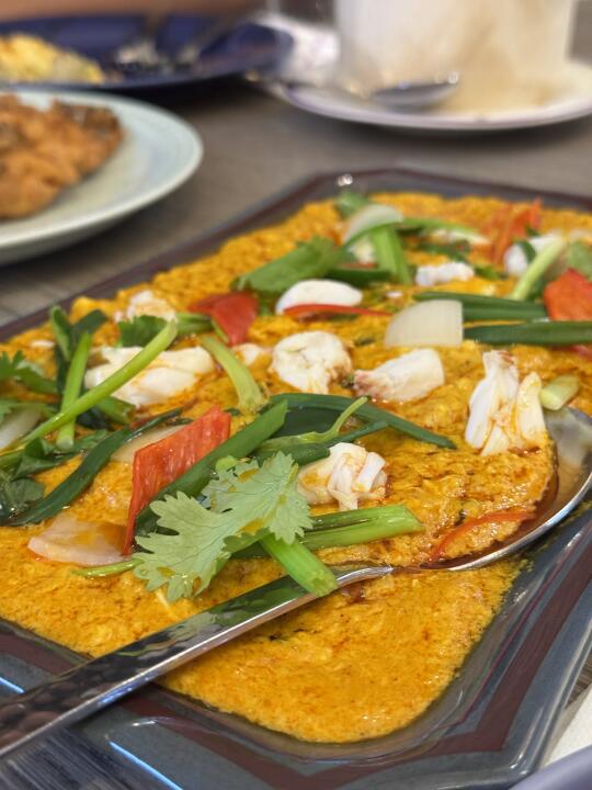 - 🦀黄咖喱炒蟹肉*:蟹肉伴着黄咖喱和米饭,十分开胃,是店里的招牌菜品。
