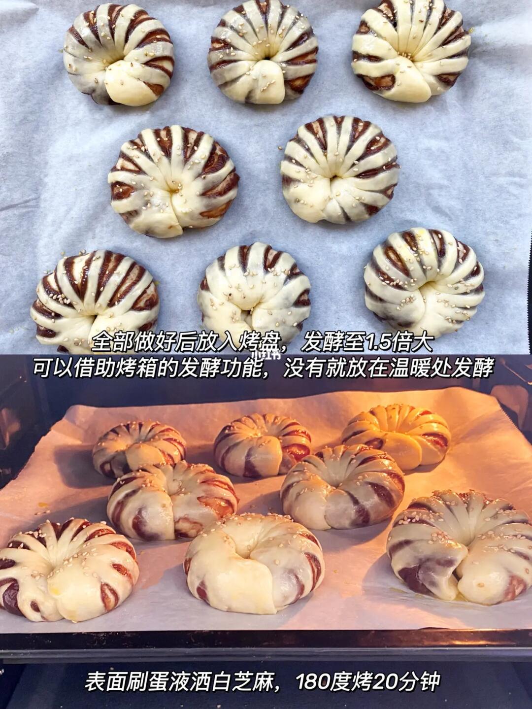 5⃣️面包表面刷上蛋液撒白芝麻,烤箱提前预