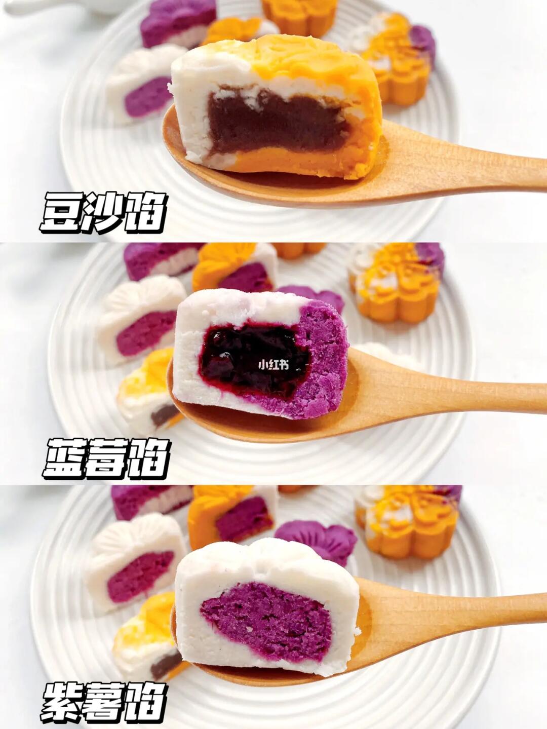▪️豆沙馅的建议8个月以上宝宝吃,一吃少吃点。蓝莓酱的做法,上一篇月饼笔记中有详细做法。