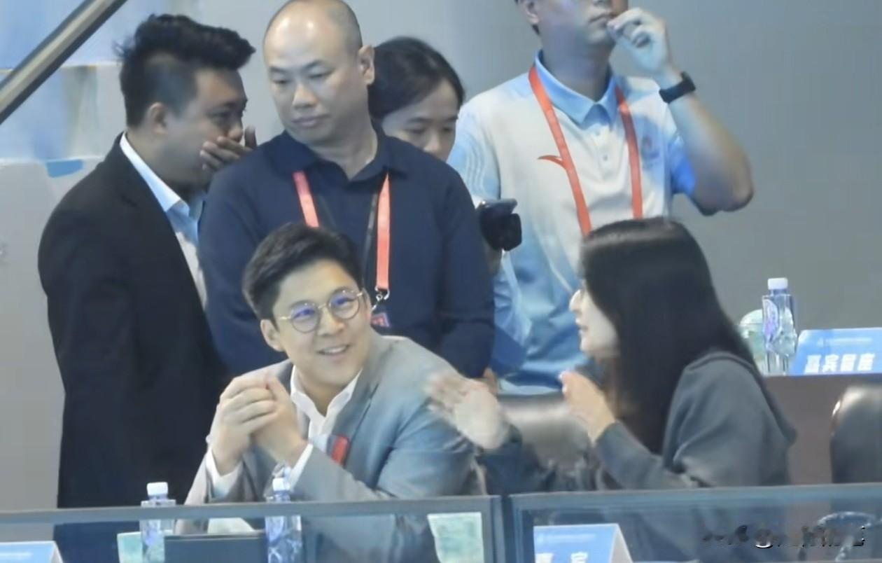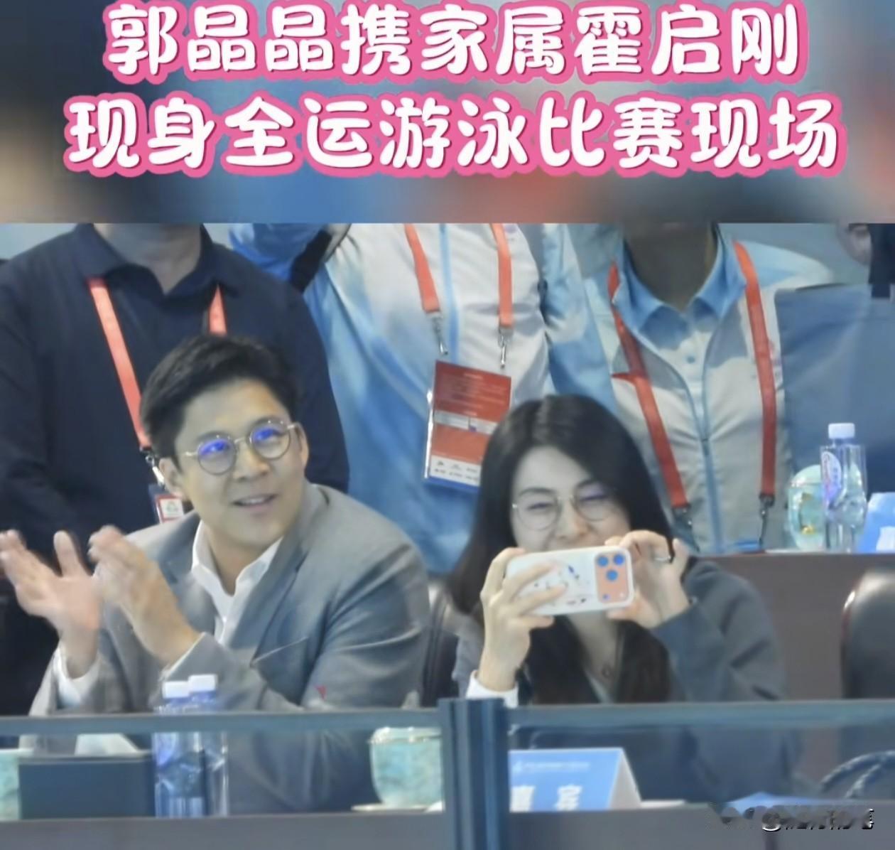 郭晶晶和霍启刚一起来看比赛了。 霍启刚真的很关心体育,也很支持香港队,本来正在选举期间,连开幕式这么重要的活动都没空抽身来参加,现在居然抽时间来观看游泳赛事了。 可能一是因为游泳比赛在深圳,距离香港比较近可以即日来回,另外就是有香港的运动员参赛,所以特地来支持。 另外,也可以看出郭晶晶与霍启刚的恩爱,郭晶晶特地陪着霍启刚一起来看比赛,俩人排排坐,既专注看比赛,又不忘鼓掌,有说有笑的,这种画面真的难得一见。