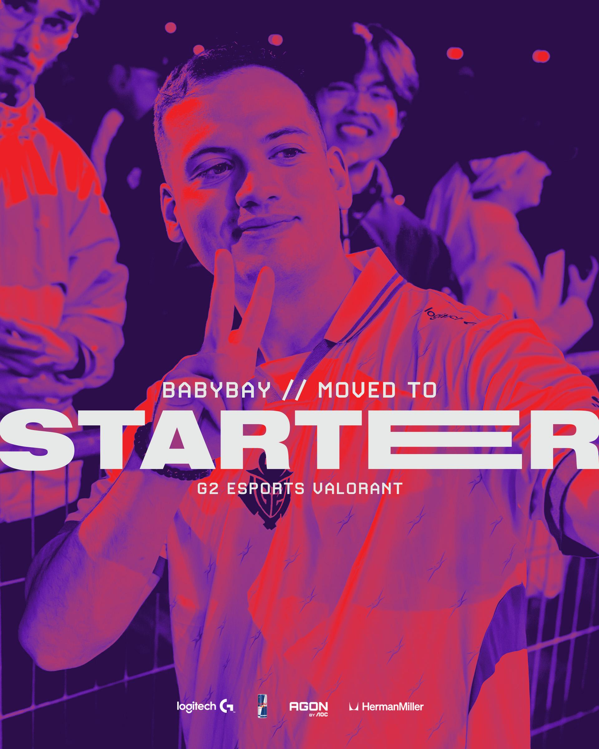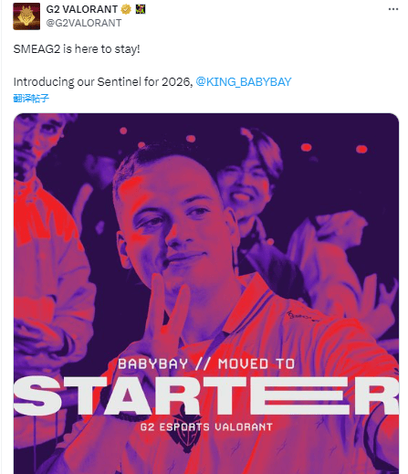 虎扑11月14日讯G2发布人员变动公告:2026首发成员baybay,担任哨卫