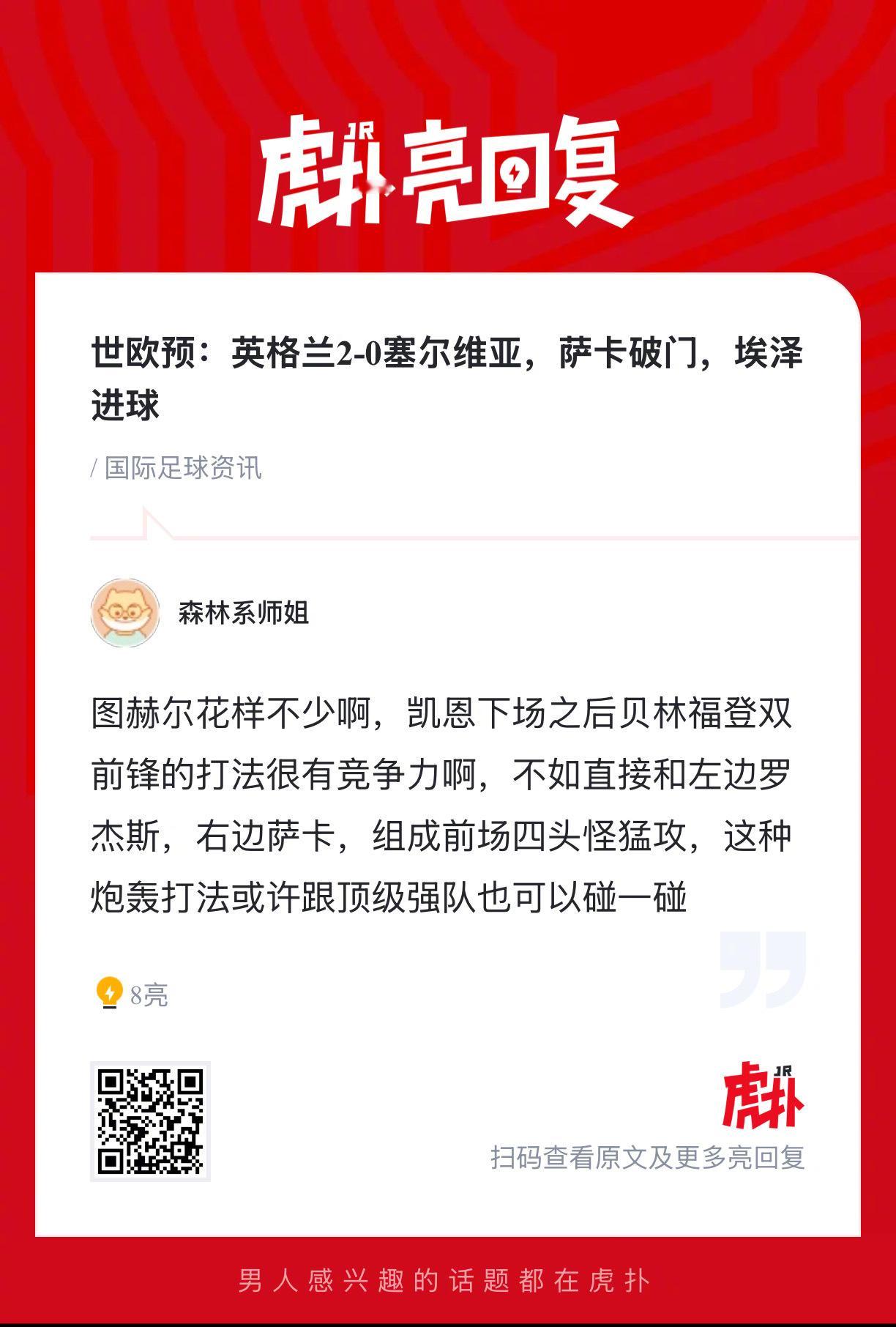 【世欧预:英格兰2-0塞尔维亚,萨卡破门,埃泽进球】上半场萨卡破门首开纪录。下半场埃泽破门扩大比分。