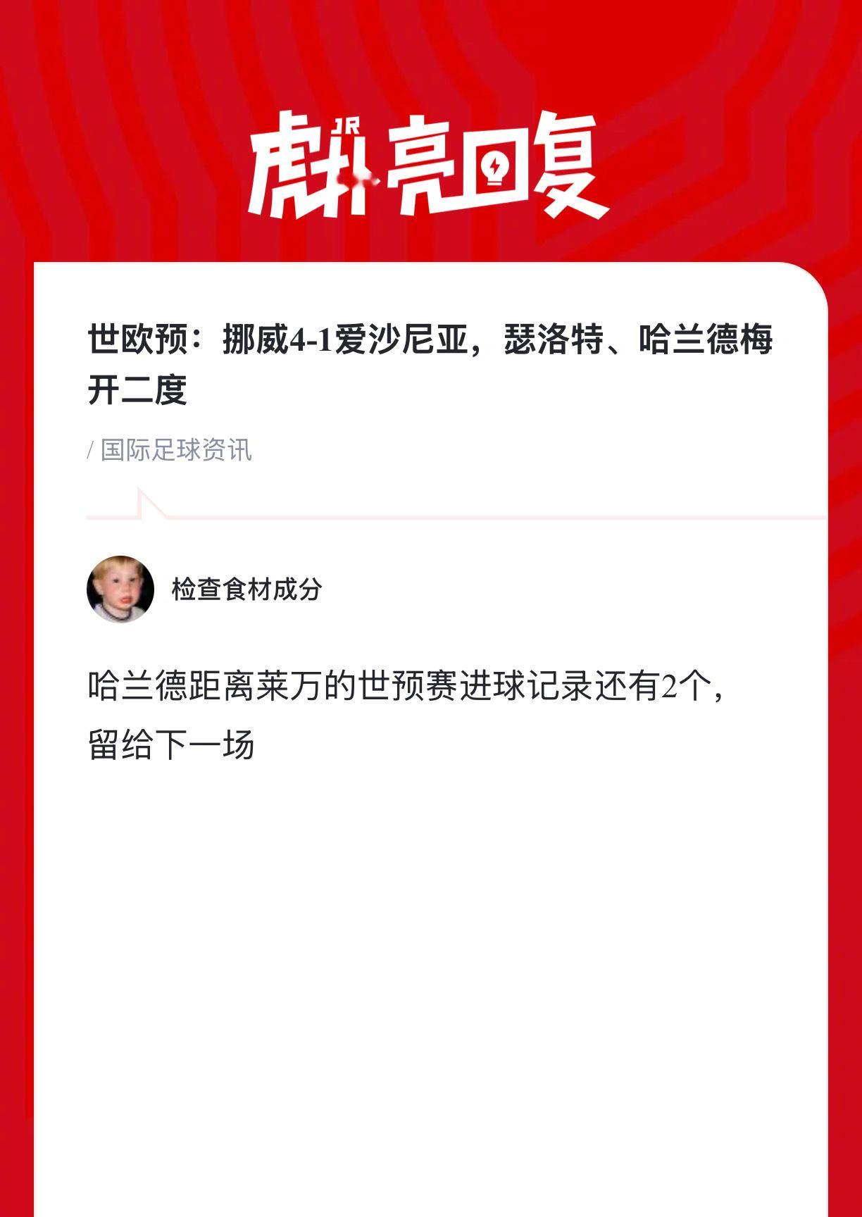 【世欧预:挪威4-1爱沙尼亚,瑟洛特、哈兰德梅开二度】下半场瑟洛特头球破门首开纪录,2分钟后瑟洛特头球梅开二度,随后哈兰德破门扩大比分,努萨助攻哈兰德破门梅开二度,萨玛破门帮助爱沙尼亚扳回一球。