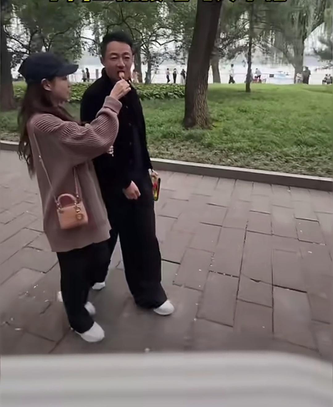 汪小菲,真是娶对了人,媳妇一看就特别疼他,一边走,一边不停的往他嘴里塞烤肠。