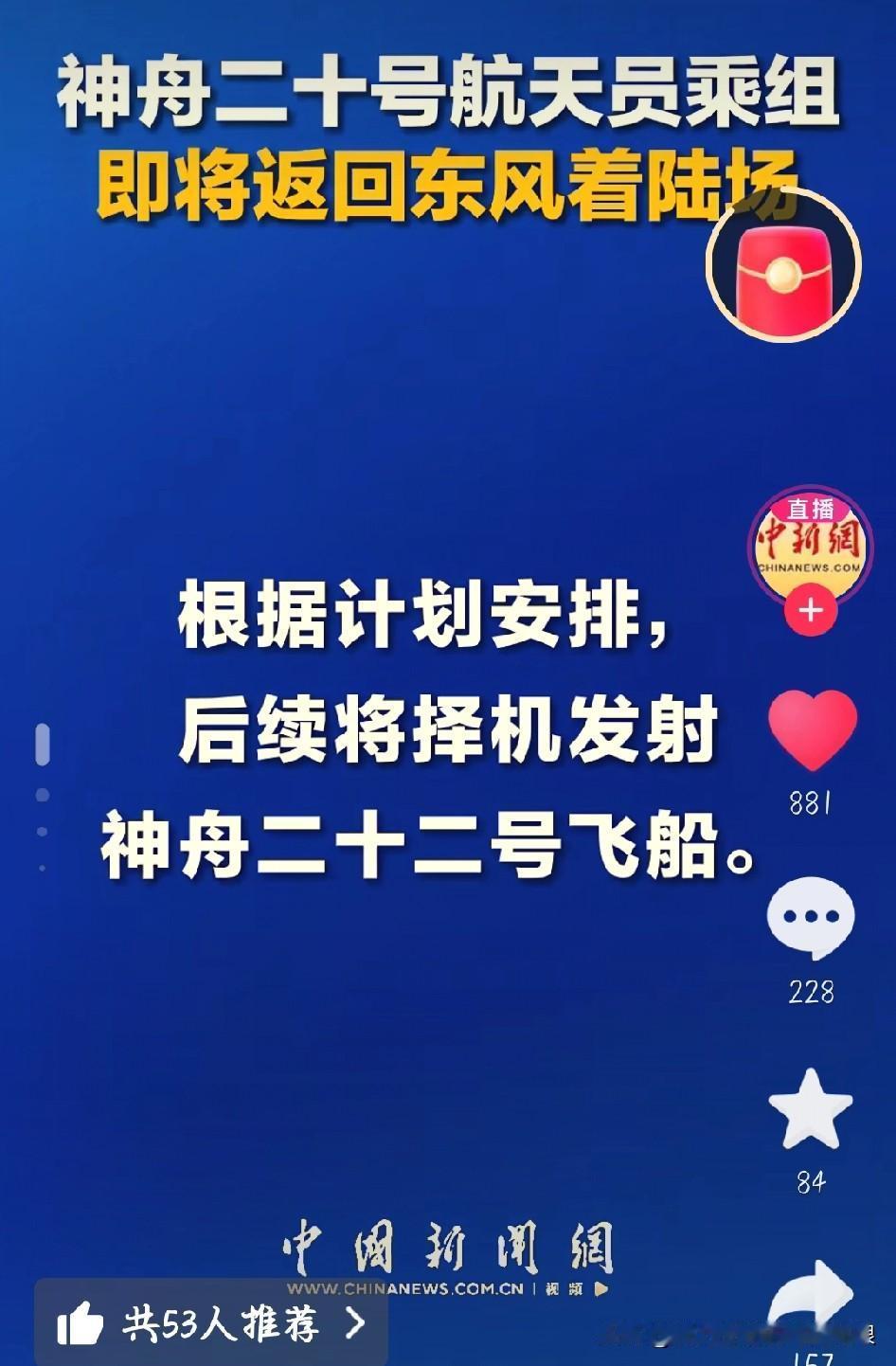 激动到搓手!神二十航天员今天回家,194天太空出差太牛了! 全国人都在等这一天!陈冬、陈中瑞、王杰三位航天英雄,今天就要从太空返回地球,平安到家啦! 从4月24日出发,他们在天宫待了足足194天,创下咱们航天员在轨驻留的新纪录!这大半年里,他们出舱四次,加起来忙了31小时,给空间站装防护装置、检查设备,每样活儿都干得漂漂亮亮。指令长陈冬更是厉害,累计在太空待了超410天,出舱次数最多! 之前遇到疑似太空碎片,返回时间推迟了几天,大家都揪着心。但咱们航天团队特靠谱,赶紧排查确保安全,现在终于能顺利返程了。 东风着陆场早就准备好啦,搜救、医疗团队都到位了。14亿人盯着屏幕盼着,祝英雄们平平安安落地,欢迎回家,你们辛苦啦! 中国神舟二十号 航天英雄归来 神二十航天员今日回家 神20航天员 图片截图于中国新闻网