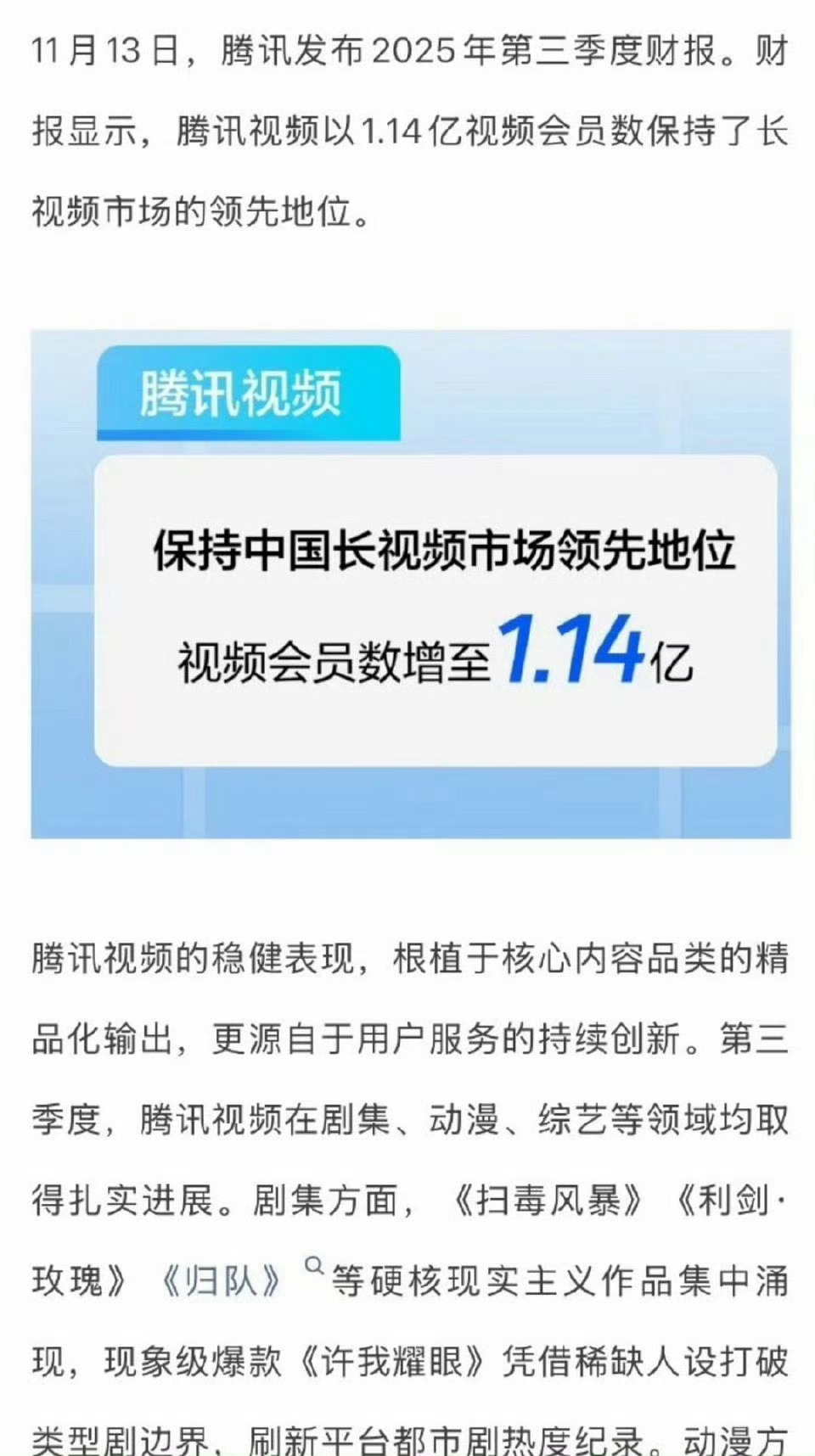#腾讯因为许我耀眼延播会员数量下降##腾讯财报提到了利剑玫瑰许我耀眼#腾讯财报提到了利剑玫瑰许我耀眼
