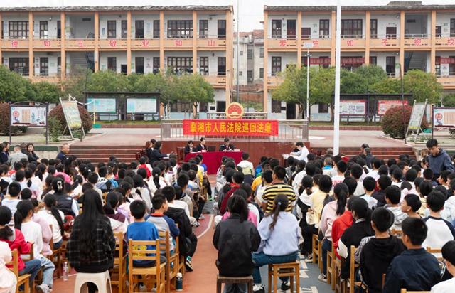 “现在开庭!”近日,临湘市人民法院聂市人民法庭来到源潭中学,公开审理一起涉校园安全的生命权、身体权、健康权纠纷,580余名师生现场旁听。