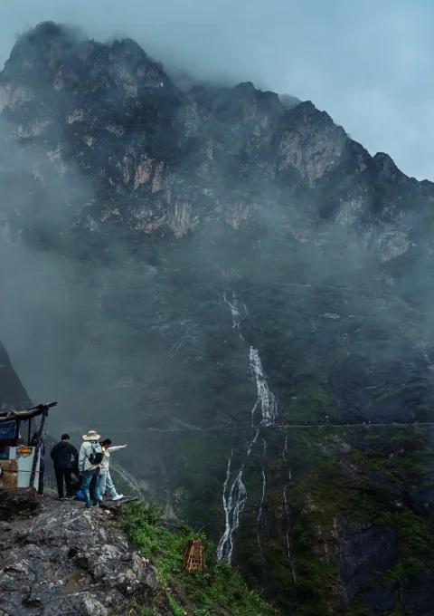 虎跳峡雨中徒步已回,给徒步小白的建议 很不幸,心心念念的虎跳峡高路两天一夜徒步,几乎全程都在下雨。 下雨能走吗?我的体会是:能。雨天的虎跳峡有不同的气质,但要盯天气、量力而行。 如果你和我一样是野外徒步新手、体能一般的“平原小菜鸡”,行程早定却碰上雨天,我这条“稳妥型”精华线可以参考: 🚗 丽江或香格里拉出发的拼车,可直送【纳西雅阁/茶马客栈/Halfway】三处起点,返程在【张老师客栈】上车更顺路。纳西雅阁→茶马是主要爬升(累),临近张老师客栈是一段长下坡(雨天易滑、容易一身泥)。因此,省力精华段推荐【茶马→龙洞瀑布】。 建议路线:茶马客栈—Halfway—龙洞瀑布—Halfway。从 Halfway 叫车去张老师客栈上车回程,车程约 30 分钟(包车约 100–120,拼车人多可到 30/人)。 发呆石路段关闭后不能下江边,上面这条线已经覆盖高路精华。全程 4 小时差不多;当天往返可以,住 Halfway 一晚窝在咖啡馆看