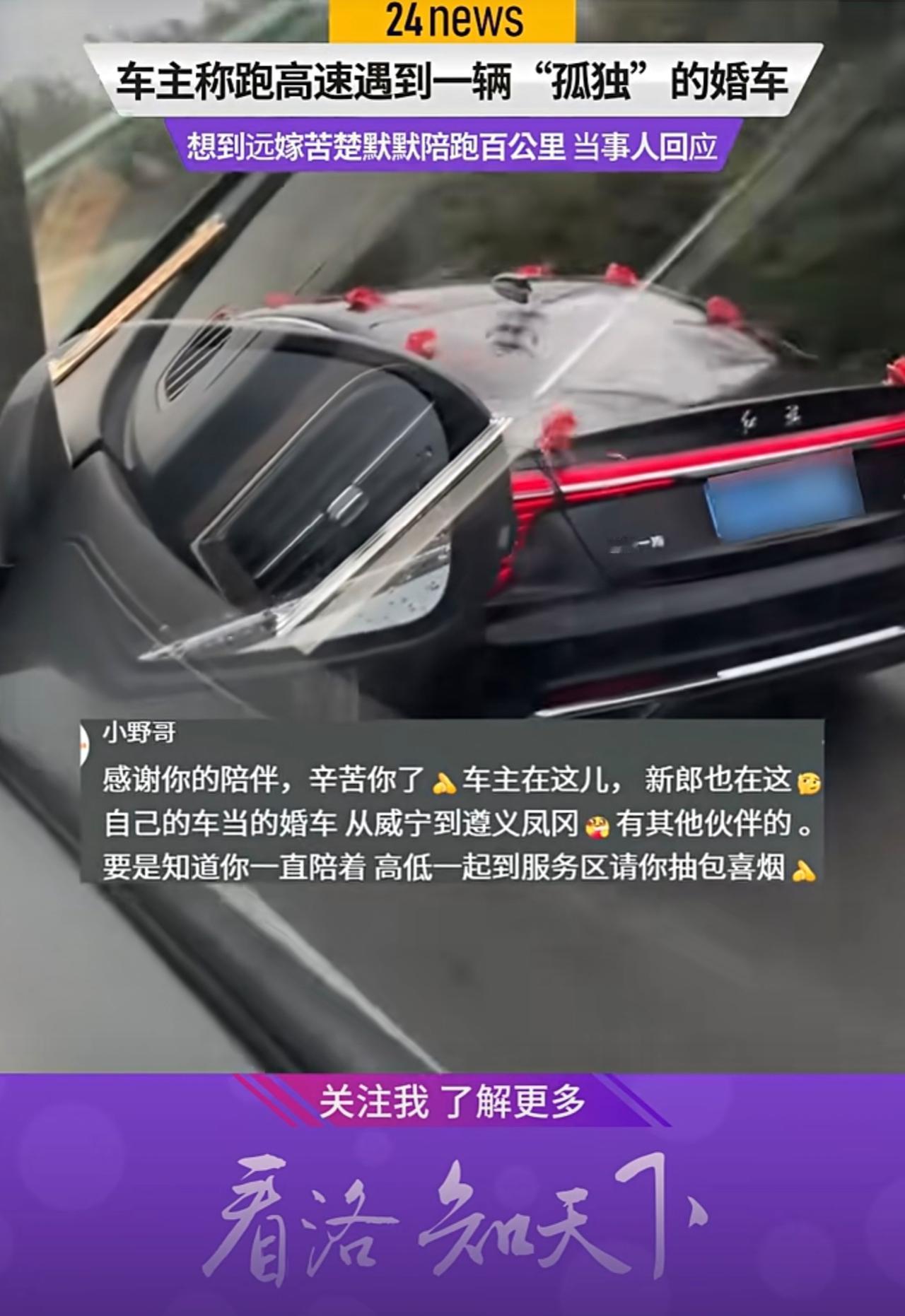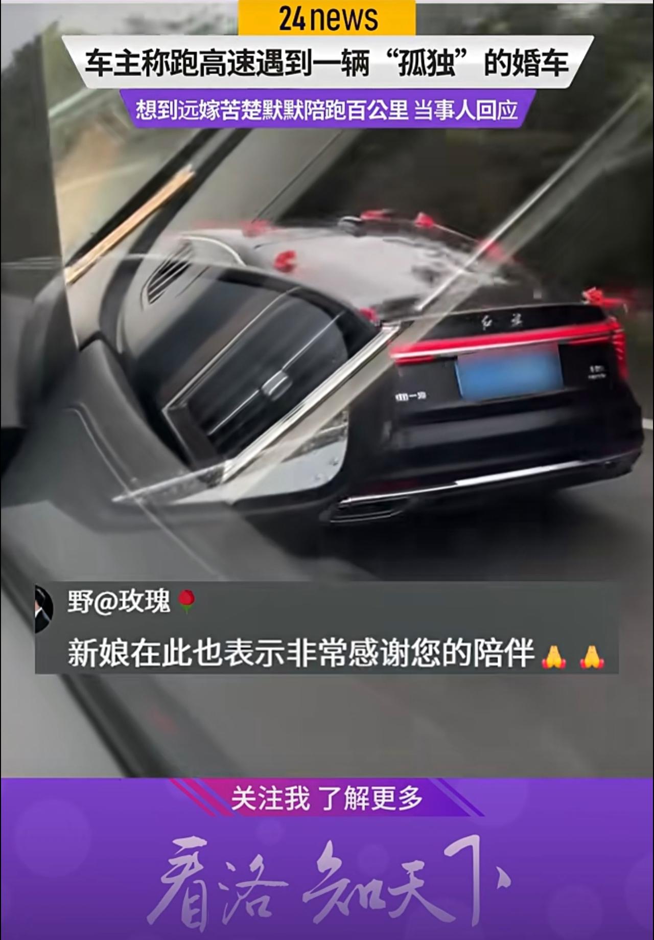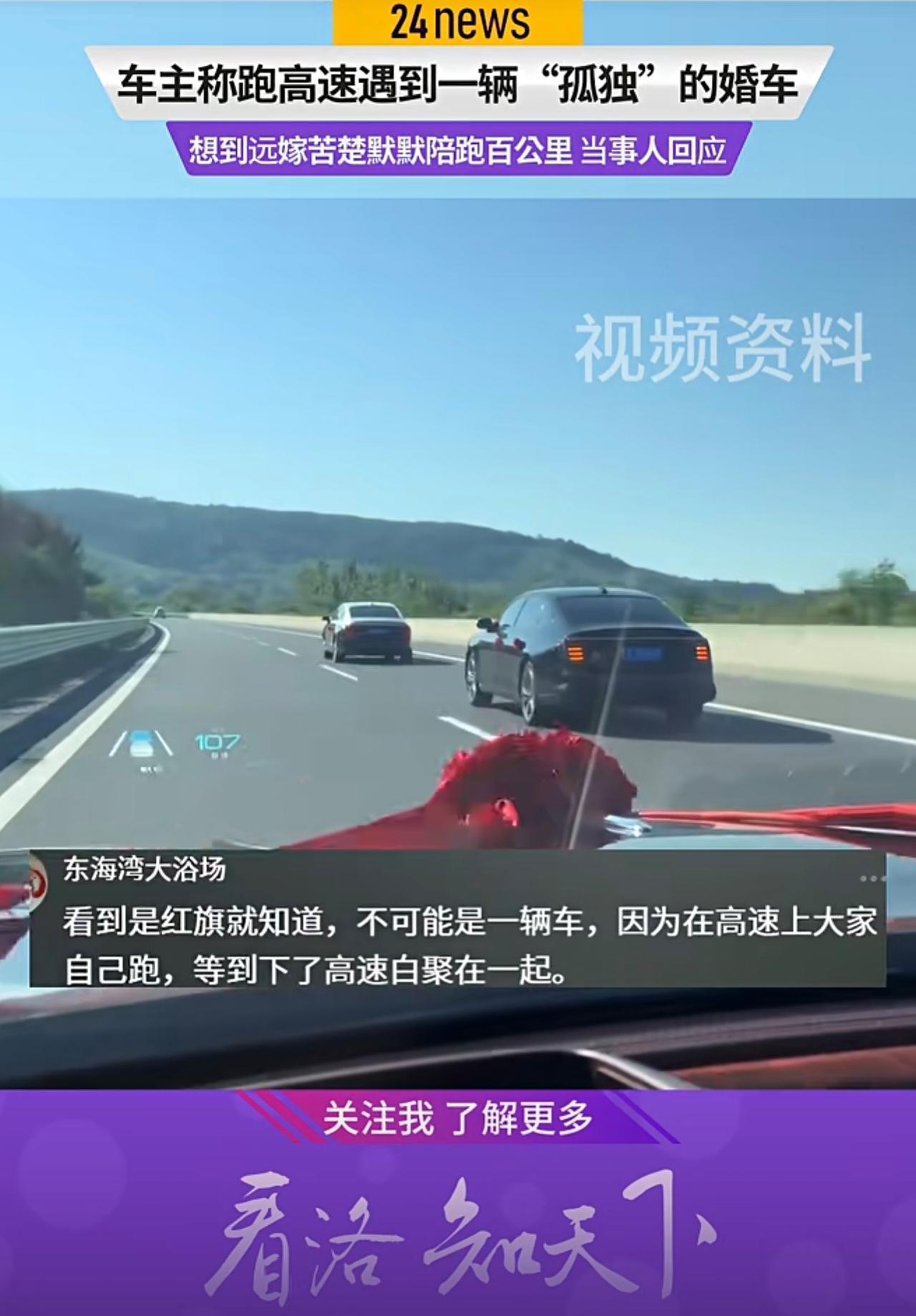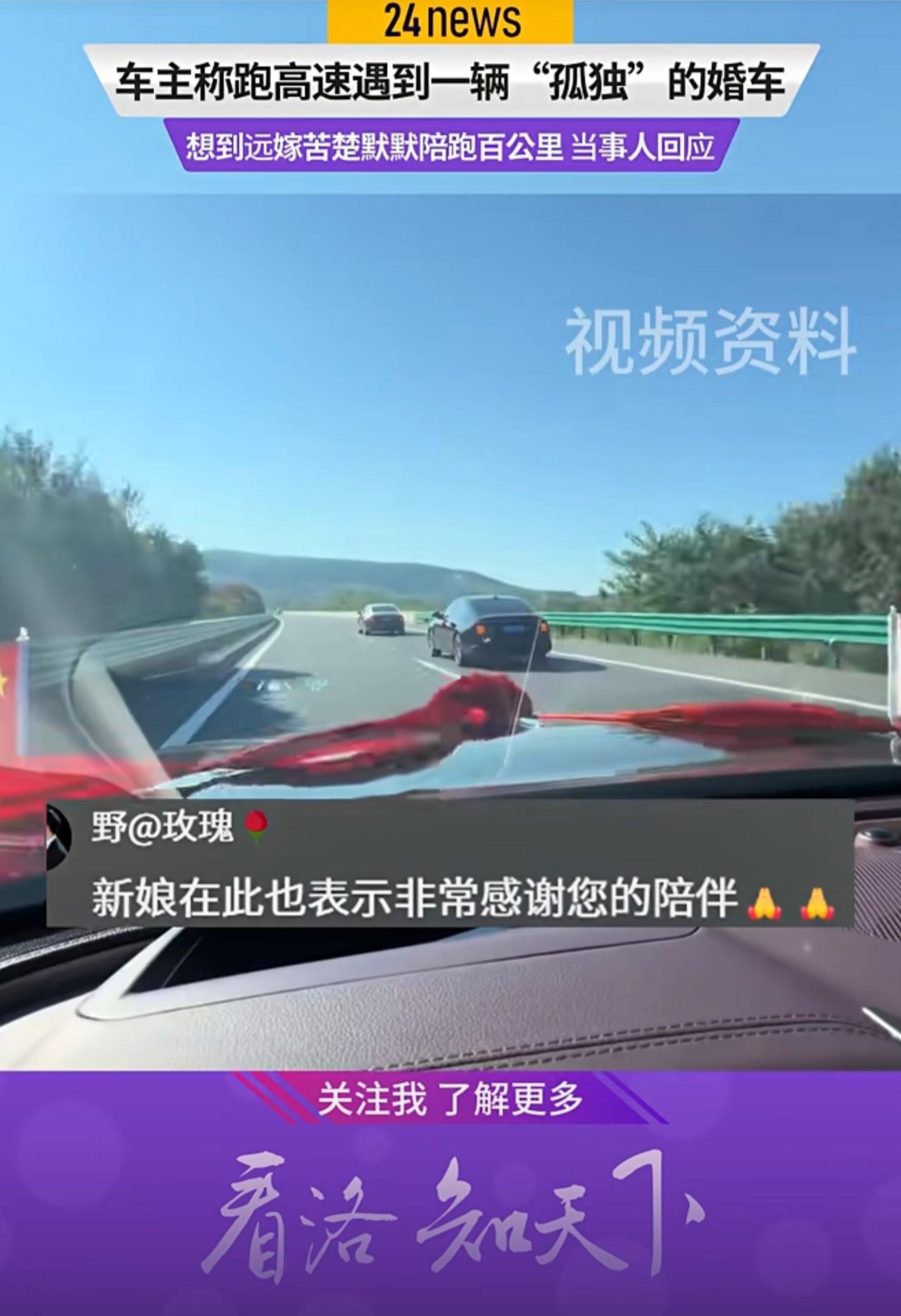 车主称跑高速遇到一辆“孤独”的婚车 联想到远嫁苦楚默默,称高低得陪跑100公里,当事人回应