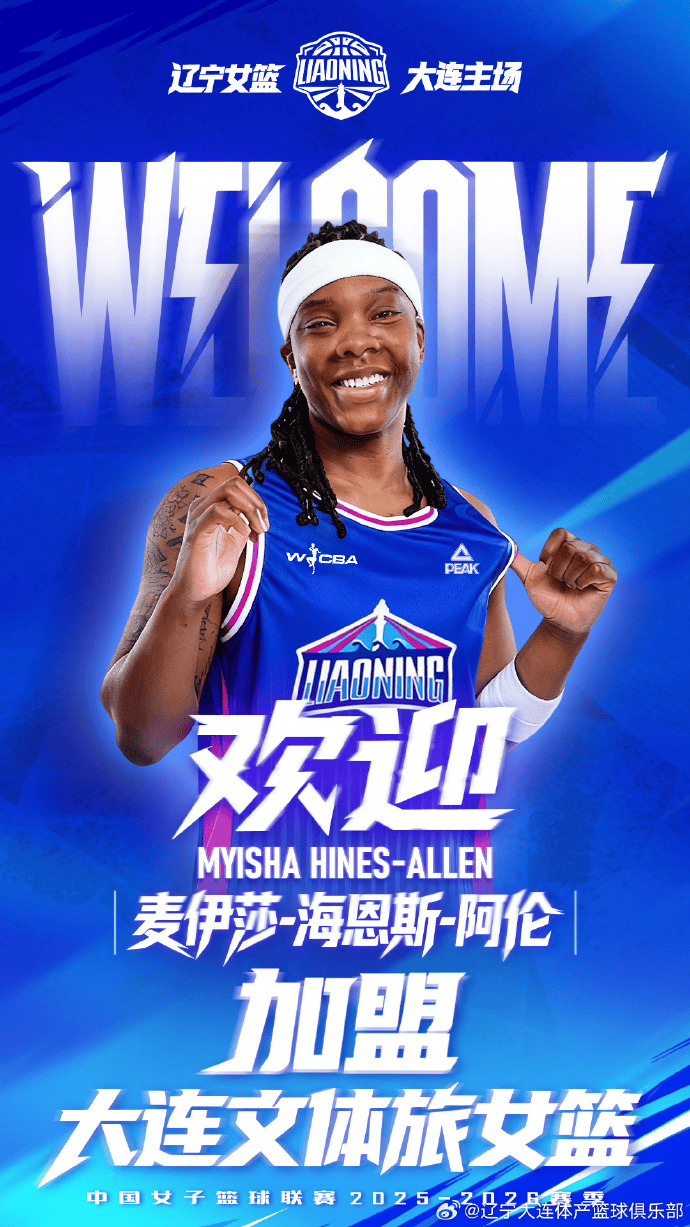 “欢迎麦伊莎·海恩斯·阿伦加盟大连文体旅女篮!