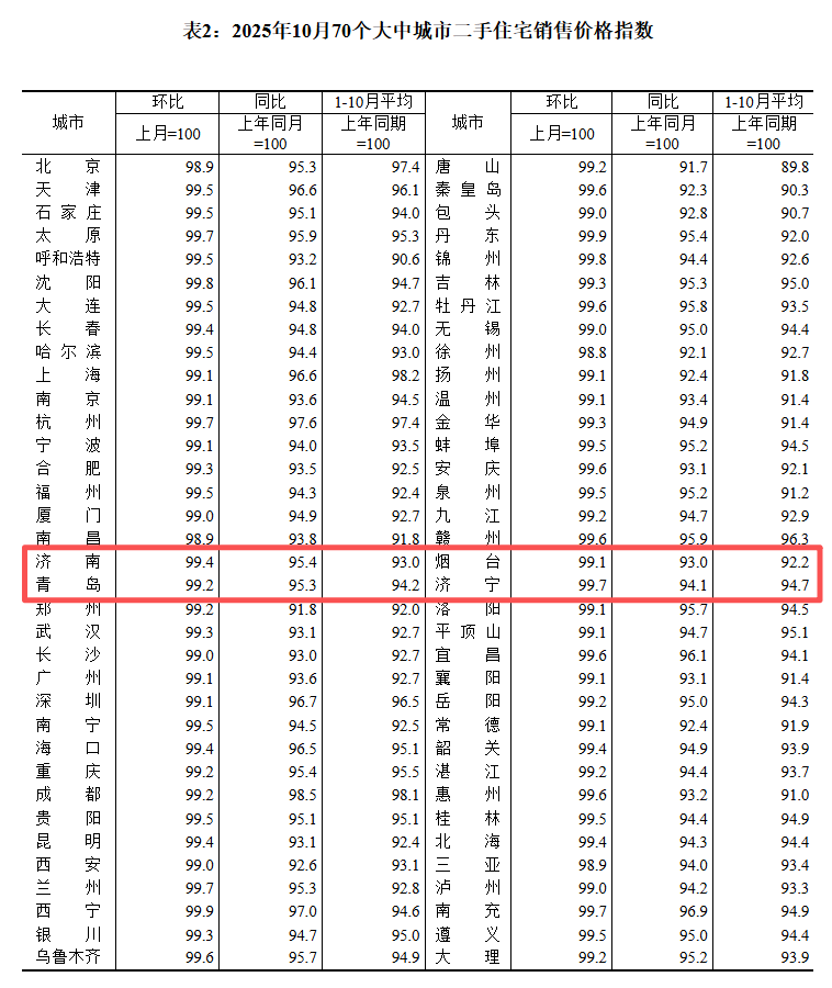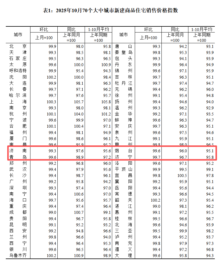 国家统计局发布10月最新房价数据 济南环比下降0.7%