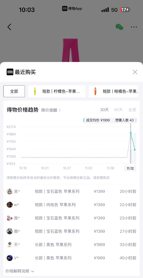 据得物App数据显示,iPhonePocket长款市场价上涨到2399元,短款价格上涨到1699元,最高溢价500元。在得物社区,苹果官宣后iPhonepocket话题迅速登上得物社区热榜。(闫妍)