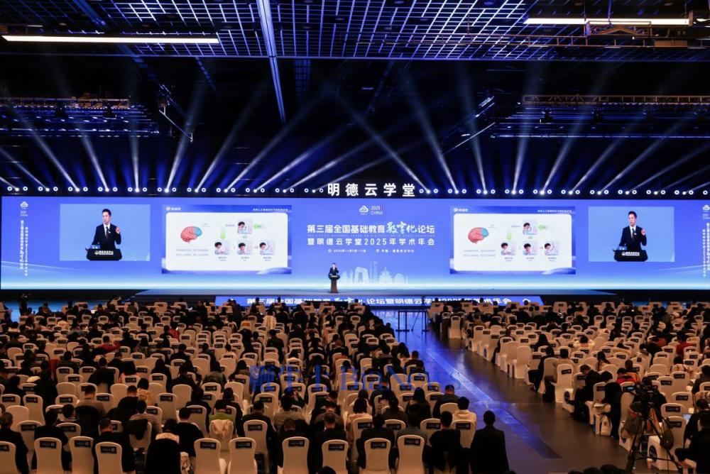十一月的北京,寒意渐浓,但国家会议中心内却热度非凡。11月8-10日,第三届全国基础教育数字化论坛暨明德云学堂2025年学术年会在这里隆重举行。这场以“人工智能时代,中小学如何应对”为主题的教育盛会,吸引了来自全国30多个省级行政区的近5000名教育工作者。他们中有深耕讲台数十年的特级教师,有锐意进取的年轻校长,还有来自教育主管部门的政策制定者。尽管背景各异,但他们都带着同一个问题而来:在这个被人工智能深刻重塑的时代,我们究竟应该给孩子们怎样的教育?