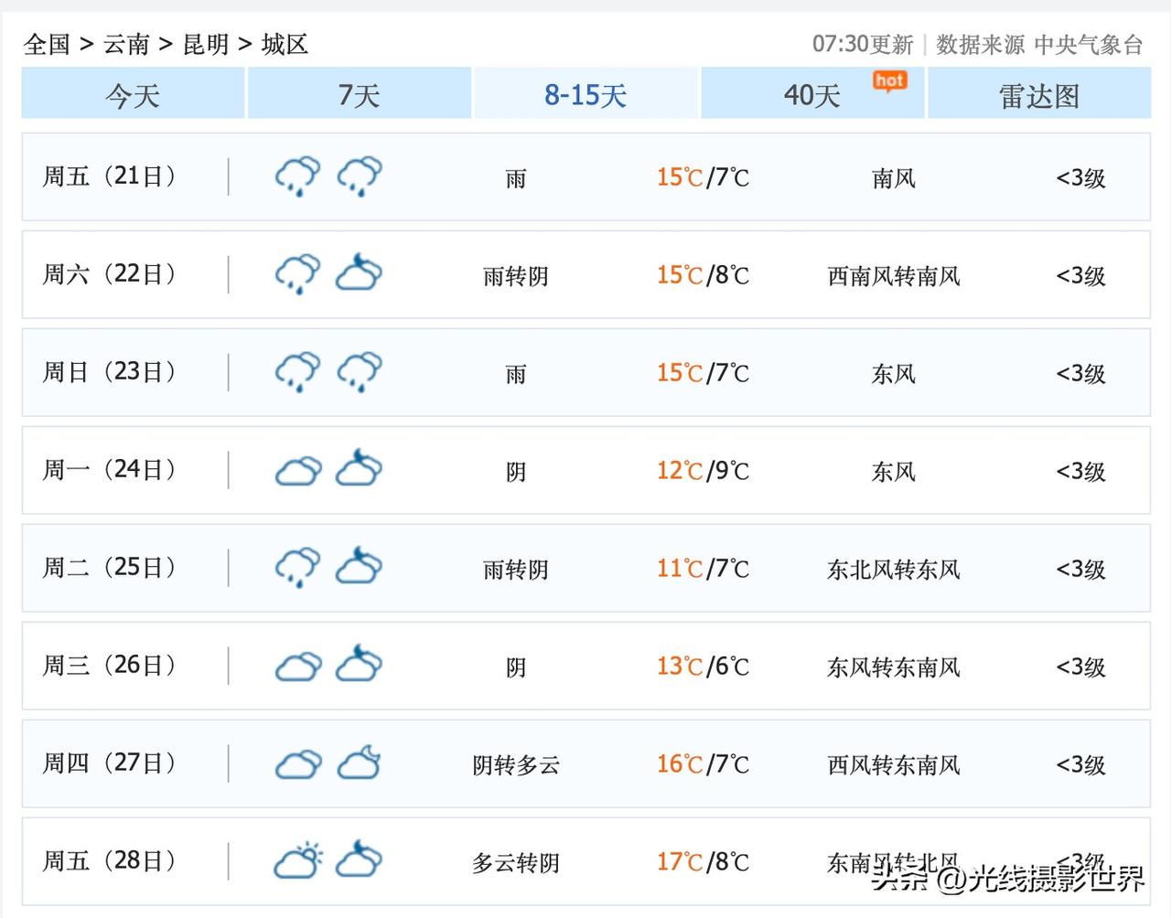 噢!我好可怜!错过了最近几天的昆明植物园的最美秋色……11月18日到26日,昆明市,阴雨连绵,阳光难觅?!!!天气预报是这么显示的……哎! 11月14日到16日,昆明天气依旧持续晴好,蓝天很美……特别适合去昆明植物园,红枫树,枫香树,特别好看,秋色浓郁!只是…… 我原本也是打算11月12日13日去昆明植物园的……但是……没去成啊! 我又打算11月18日从乌鲁木齐回来之后去昆明的,但是,看了看这天气预报,我能说啥呢?! 嗯,翠湖最近的风景,接过了北京中山公园颐和园圆明园的接力棒啦!