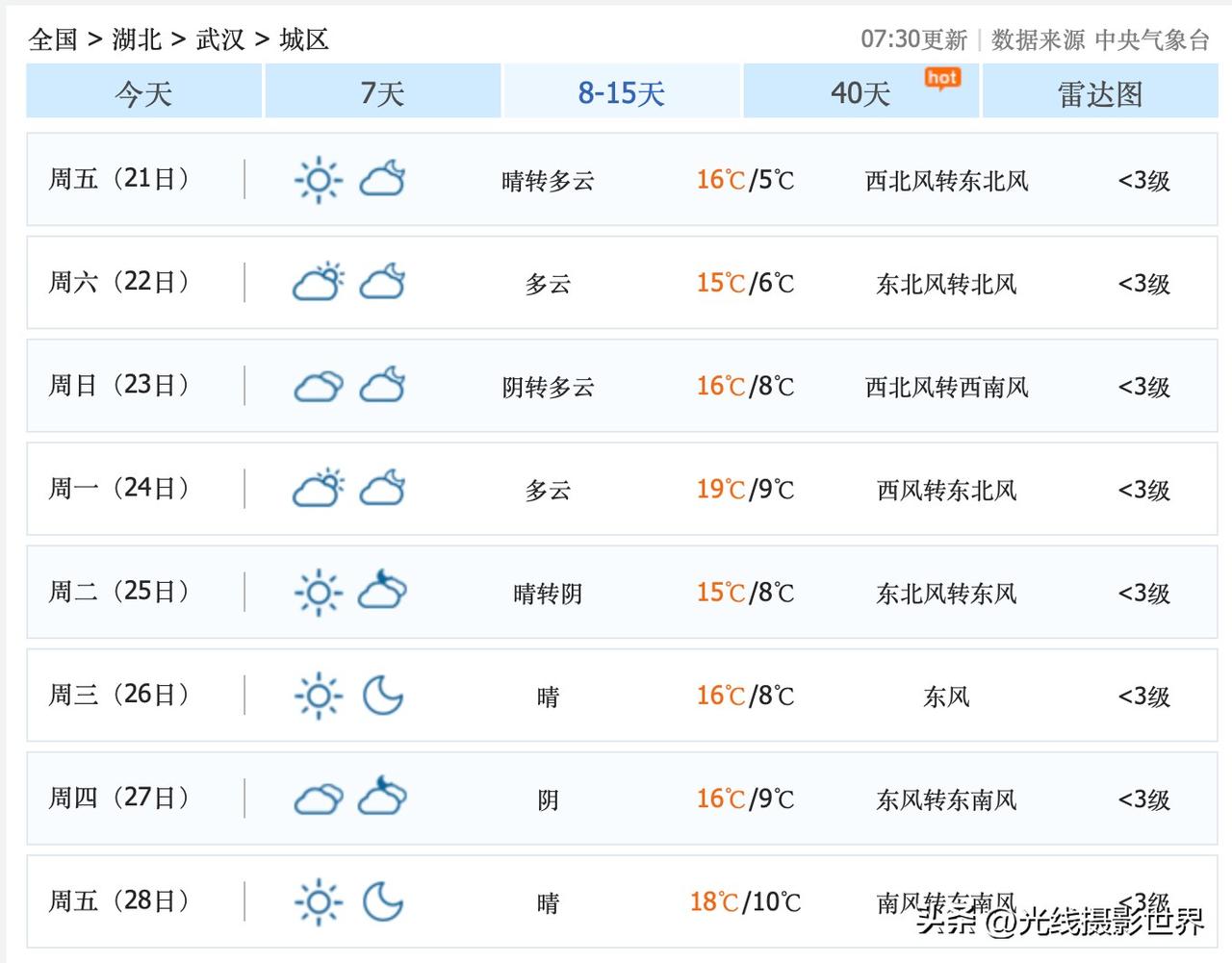 啊啊啊!吓死武汉的单身狗了!武汉即将大降温啊!11月17日和18日,武汉最低气温将会跌破0度,零下1度的寒潮,即将来袭啊!武汉,可能要打霜了!武汉人的红菜苔,即将变得更加美味! 只是,11月14日和16日,武汉非常暖和,最高气温23度…… 11月17日,星期一,武汉大降温,寒潮来袭,最低气温将会跌破0度! 11月18日,星期二,武汉气温10度到-1度……武汉真正的冬天的感觉,终于要回来了!