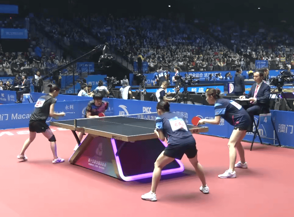 第二盘女单比赛,江苏队王迎3-2(12-10,7-11,4-11,11-7,13-11)赵尚,江苏队2-0领先。