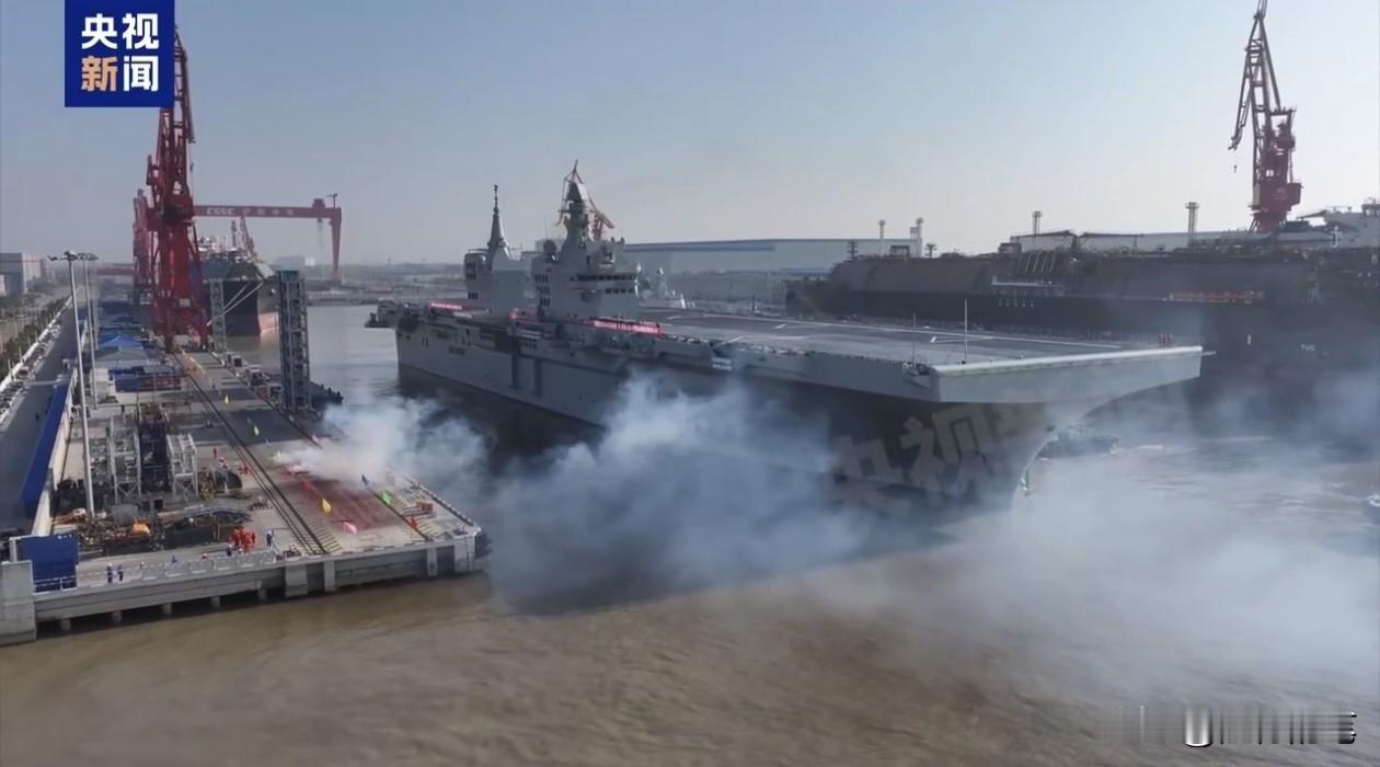 看到没?原来四川舰海试也会放鞭炮这么接地气。 在四川舰启动驶出港口时,在码头边上放起了鞭炮,从空拍的镜头都可以看到白色的浓烟和满地红色的鞭炮纸,很是喜庆。 看来船舰下水与第一次海试不同,下水一般都是在船头挂着香槟举行仪式,而海试则放鞭炮庆祝。虽然都是值得庆贺的事,但相对来说还是感觉放鞭炮比较接地气和有气氛。但还是想说,这还是第一次在军舰海试时看到镜头里有放鞭炮。不知这是第一次这样呢?还是以往都是惯例?