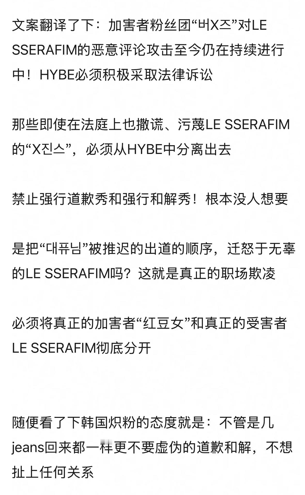 在得知 NewJeans全员即将回归ADOR后 LESSERAFIM 粉丝的维权