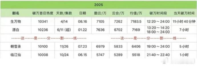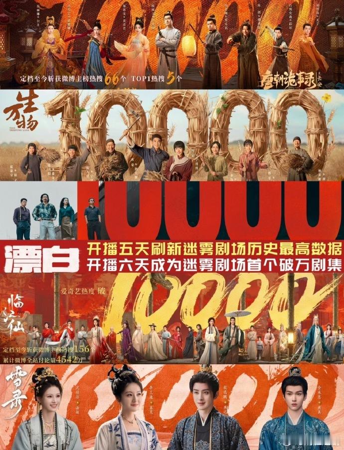 🥝今年的五部破万剧《生万物》《漂白》《朝雪录》《唐朝诡事录3》《临江仙》,对应