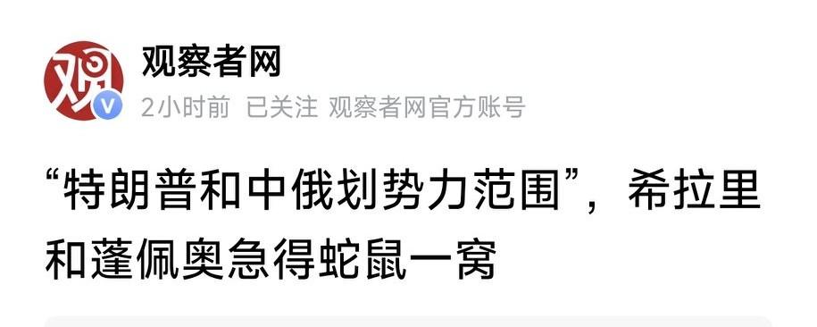 “特朗普和中俄划势力范围”,希拉里和蓬佩奥急得蛇鼠一窝!特朗普这一搞,可把希拉里和蓬佩奥急坏了,真成蛇鼠一窝了。之前大选时,特朗普就“示好中俄”,高喊“中国伟大”,还称当选将承认克里米亚为俄罗斯领土。这可把希拉里气得够呛,痛批特朗普“绝对拥戴”俄罗斯的政策目标。 如今特朗普若真和中俄划势力范围,那更是挑战了希拉里、蓬佩奥这些人的利益。美国政坛本就乱,特朗普与拜登矛盾不断,还在国会遇到反水情况。希拉里和蓬佩奥重出江湖,估计是想搅局,阻止特朗普的计划,他们这着急的模样,真是让人看笑话。