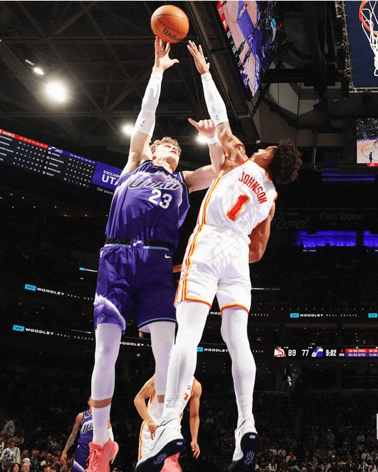 赛后,NBA官方晒出杰伦-约翰逊和劳里-马尔卡宁的赛场同框照,并配文道:“一张图片尽显71分风采。”