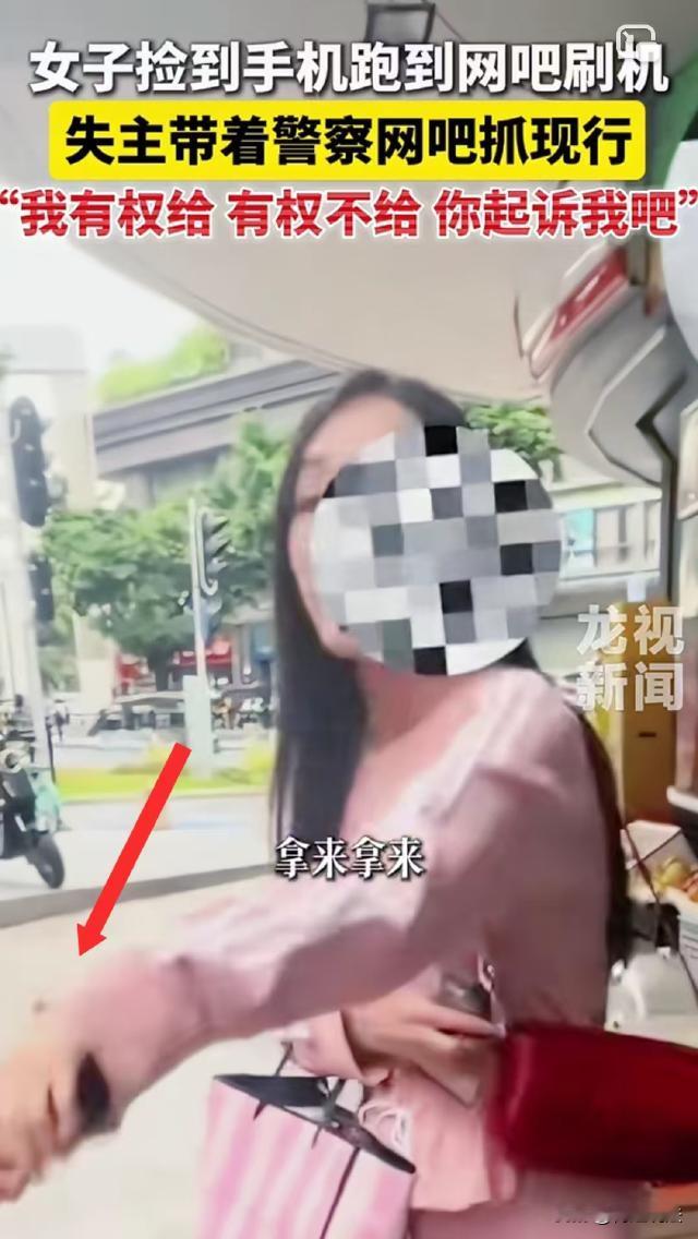 广东,女子捡到一个手机,失主给她打电话女子拒绝归还,还跑到网吧准备非法刷机,失主领着民警按照定位找到网吧,女子态度嚣张地说:我捡的东西,又不是我偷的!我有权给,也有权不给!你厉害就去起诉我呗! 据龙视新闻报道,小丽(化名)的手机不小心丢了,她发现后赶紧打电话过去,接电话的是一个女子。 小丽称手机是自己的,想要让她归还,可女子支支吾吾的,小丽明白了,女子这是不想还。 对于小丽来说,手机本身价值不菲,而且里面存了很多对她来说很重要的东西,是最贵重的物品,如果找不回来,将给她带来很多麻烦。 小丽再三和女子沟通,希望对方还给自己,可女子最开始还接电话,后来直接不接了。 小丽的手机有定位,于是她直接报了警,民警给女子打电话,女子听了两句就挂了,后面不再接听。 于是,小丽根据定位信息,带着民警找到了一家网吧。在网吧的二楼,小丽看到一名身穿粉色套装的女子正在上网,自己的手机就放在旁边充电。 民警走过去,问粉衣女子:你是不是捡到过别人一部手机? 小丽一把将手机抓在手里,对民警说:这个手机就是我的! 让人没想到的是,粉衣女并非正常上网,她来这里竟然是为了非法刷机,想将小丽的手机据为己有。 看到民警到来,旁边上网的人看起了热闹,粉衣女子脸上挂不住,低声下气和民警及小丽商量,能不能去外面说。 小丽非常气愤:你刚刚不是很嚣张吗?现在怕丢脸是吗? 小丽质问了她两遍,粉衣女突然火了:我没什么丢脸的,这是我捡的,又不是我偷的! 小丽说,民警已经给她打电话了,是她自己不接。 女子辩解称:我怎么知道他们是不是诈骗? 双方争论不休,民警将他们带到门口调解。 调解期间,粉衣女双手抱在胸前,说:我捡来的东西,我有权给,也有权不给! 小丽气愤地说:你有什么权!我可以起诉你! 粉衣女指着小丽说:你起诉啊!来,你起诉! 当时,小丽的手机被调解的民警拿在手里,粉衣女趁民警不注意,一把将小丽的手机抢了回去,且拒不归还,非要让小丽去起诉。 那么,粉衣女的行为应该如何认定? 《民法典》第三百一十四条规定:拾得遗失物,应当返还权利人。拾得人应当及时通知权利人领取,或者送交公安等有关部门。 小丽不慎丢失手机,该手机属于遗失物,粉衣女子捡到手机后,依照法律规定,她有义务及时通知小丽领取手机,或者将手机送交民警 。 然而,粉衣女子在小丽打电话表明身份并要求归还手机时,不仅支支吾吾不想归还,后续还直接不接电话,明显违反了上述法律。 《刑法》第二百七十条规定:将代为保管的他人财物非法占为己有,数额较大,拒不退还的,处二年以下有期徒刑、拘役或者罚金;数额巨大或者有其他严重情节的,处二年以上五年以下有期徒刑,并处罚金。 将他人的遗忘物或者埋藏物非法占为己有,数额较大,拒不交出的,构成侵占罪,依照前款的规定处罚。本条罪,告诉的才处理。 粉衣女子是捡到的手机,属于小丽的遗忘物范畴。判断她是否构成侵占罪,关键在于手机的价值数额是否较大。 一般来说,不同地区对于数额较大的标准有所不同,但通常在五千元至一万元以上。 如果小丽的手机价值达到了当地规定的数额较大标准,且粉衣女子在民警调解时趁其不注意抢回手机并拒不归还,这种行为就可能构成侵占罪。小丽可以通过提起刑事自诉来维护自己的权益。 退一步讲,即便粉衣女子的行为不构成侵占罪,她也需要承担相应的民事责任。 《民法典》第三百一十六条规定:拾得人在遗失物送交有关部门前,有关部门在遗失物被领取前,应当妥善保管遗失物。因故意或者重大过失致使遗失物毁损、灭失的,应当承担民事责任。 粉衣女子捡到手机后,不仅没有妥善保管并及时归还,反而跑到网吧准备非法刷机,意图将手机据为己有。 这种行为属于故意非法占有他人财物,若给小丽造成了损失,比如刷机导致手机内重要数据丢失等,小丽有权要求粉衣女子承担赔偿责任。 粉衣女子辩解称手机是她捡的,又不是她偷的!她有权给,也有权不给,这些辩解理由在法律上是不成立的。 对于粉衣女子的行为,您怎么看?