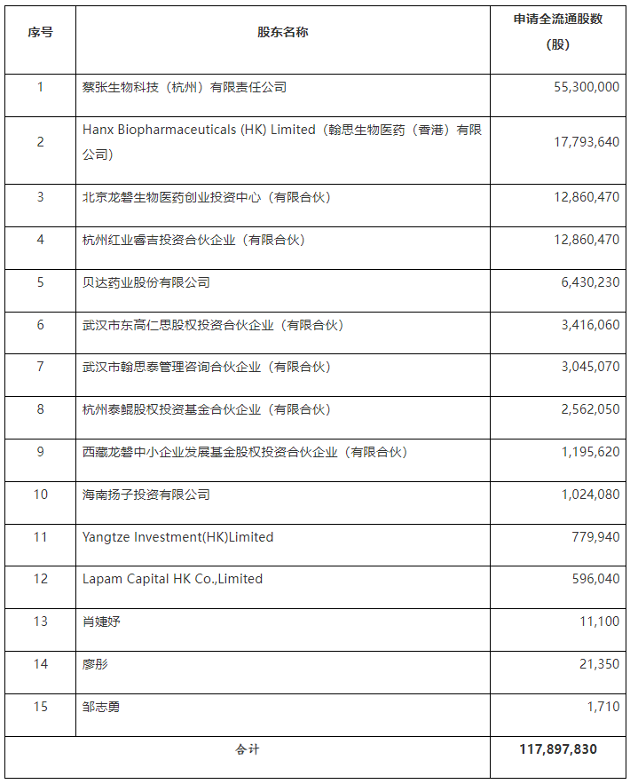 根据备案事项,翰思艾泰可发行不超过2106.97万股普通股并在香港联合交易所上市。同时,公司15名股东拟将所持合计117,897,830股境内未上市股份转为境外上市股份,并在香港联合交易所上市流通。