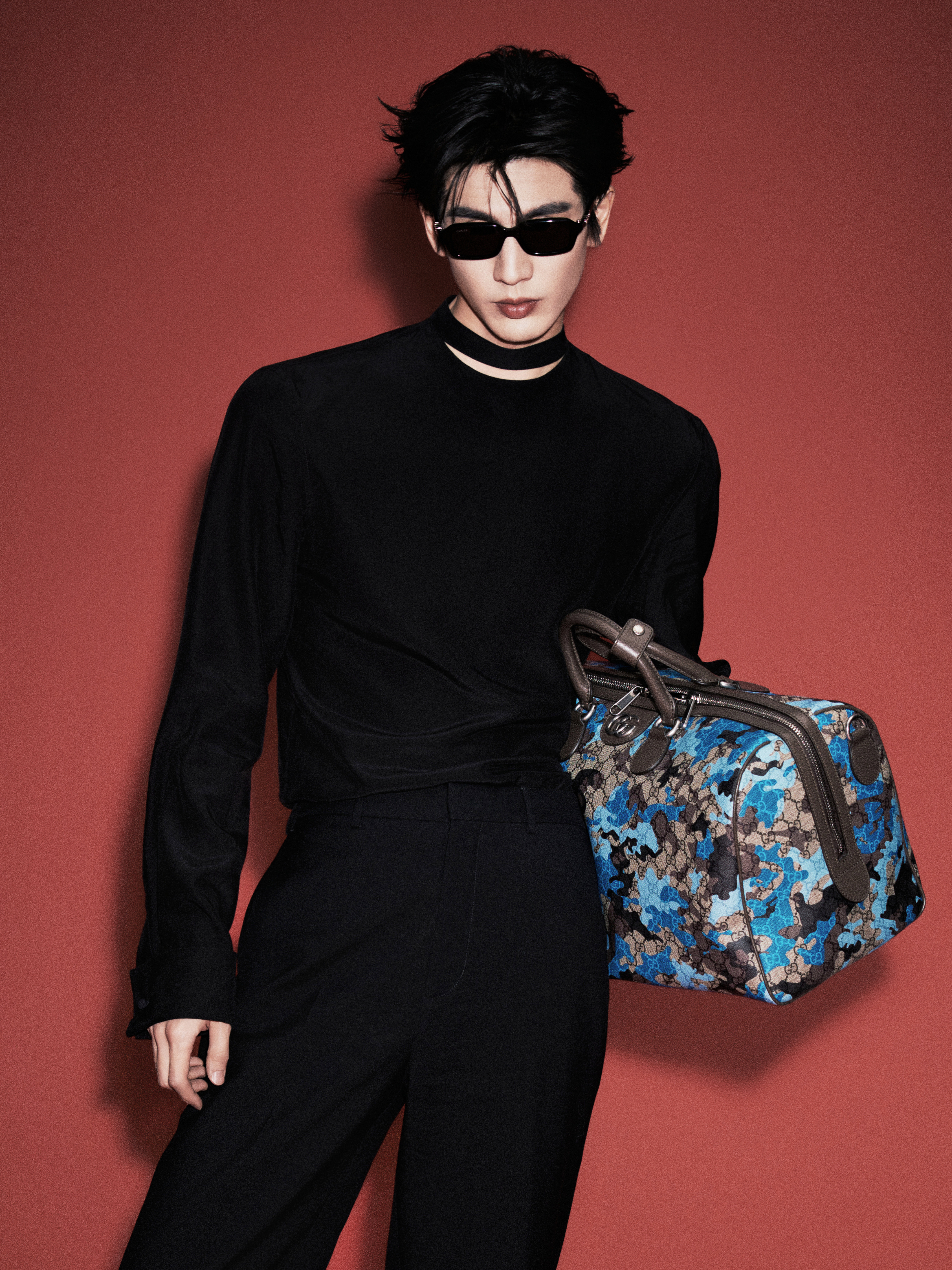 张凌赫今日出席GUCCI品牌活动造型图集,带来Logo印花皮质大衣的演绎,这件的