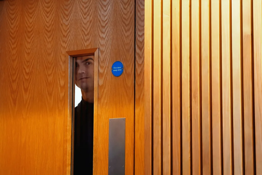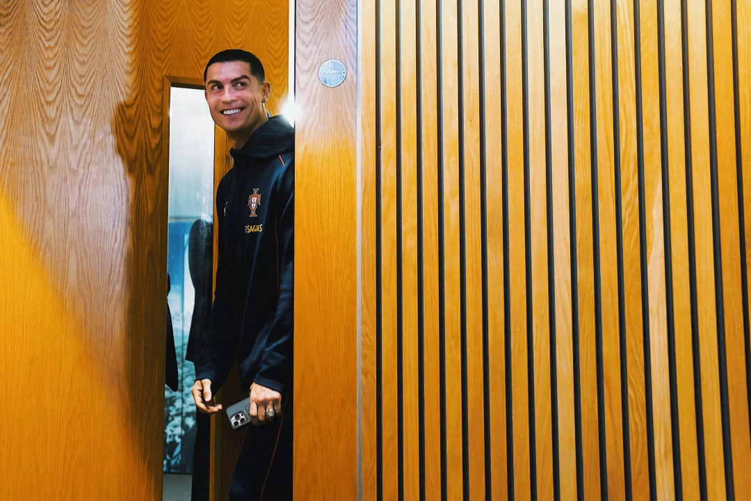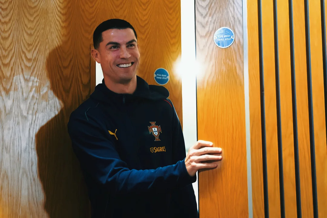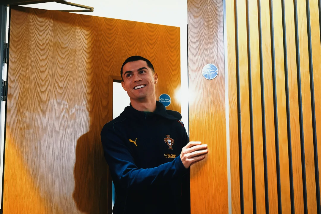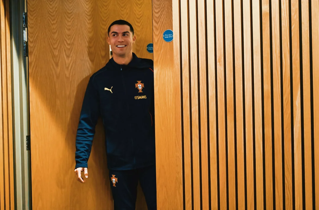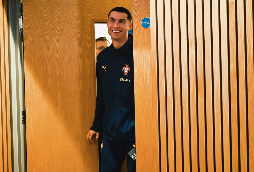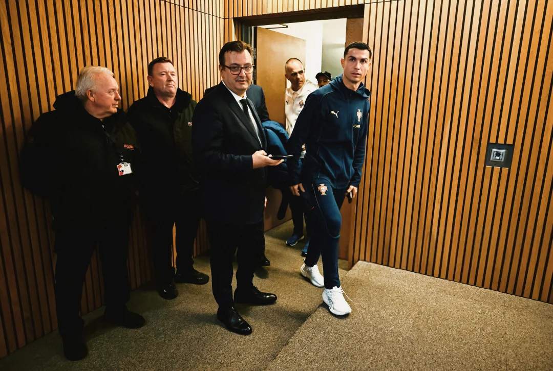 🎞️ C罗出席对爱尔兰新闻发布会的赛前,在门外和记者们的调皮互动