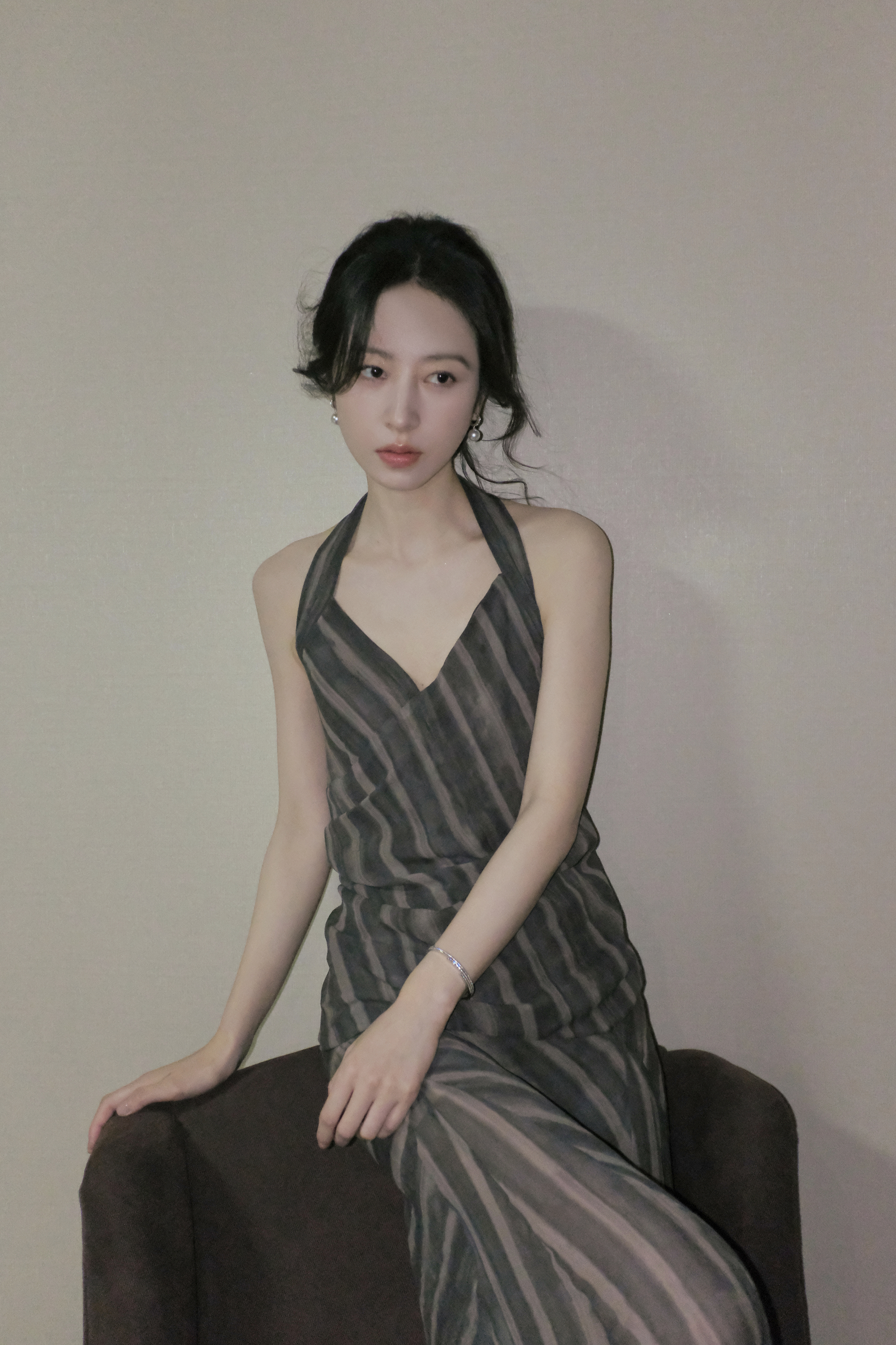 周雨彤踏光启程,以初心为缀深色条纹吊带裙搭配慵懒盘发优雅随性,期待《太平年》,期待孙太真