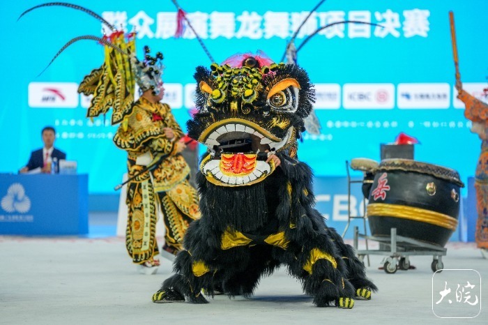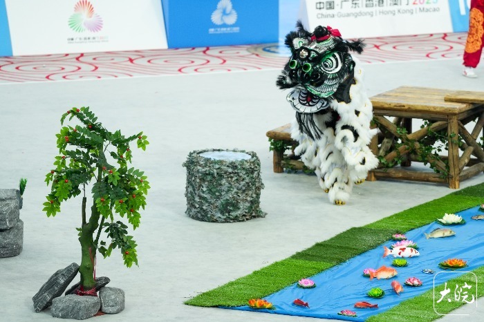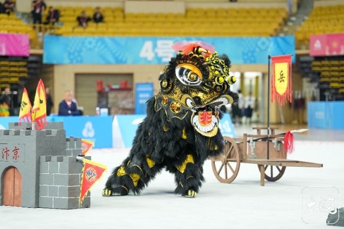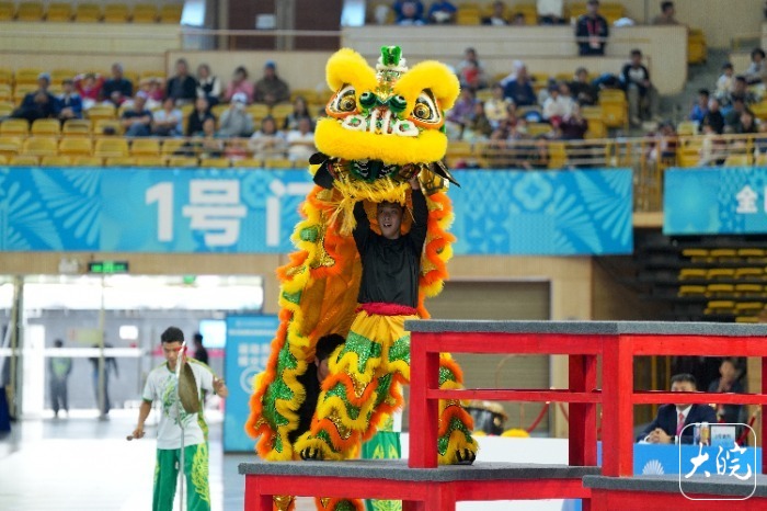 大皖新闻讯佛山,黄飞鸿故乡。十五运会群众展演舞龙舞狮项目南狮传统决赛13日在佛山岭南明珠体育馆举行。2006年,南狮入选首批国家级非物质文化遗产。