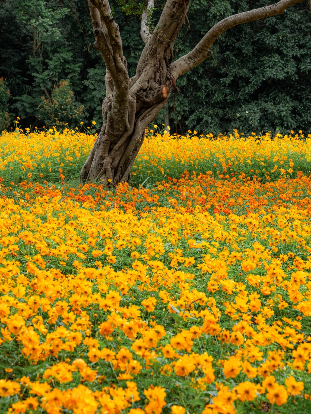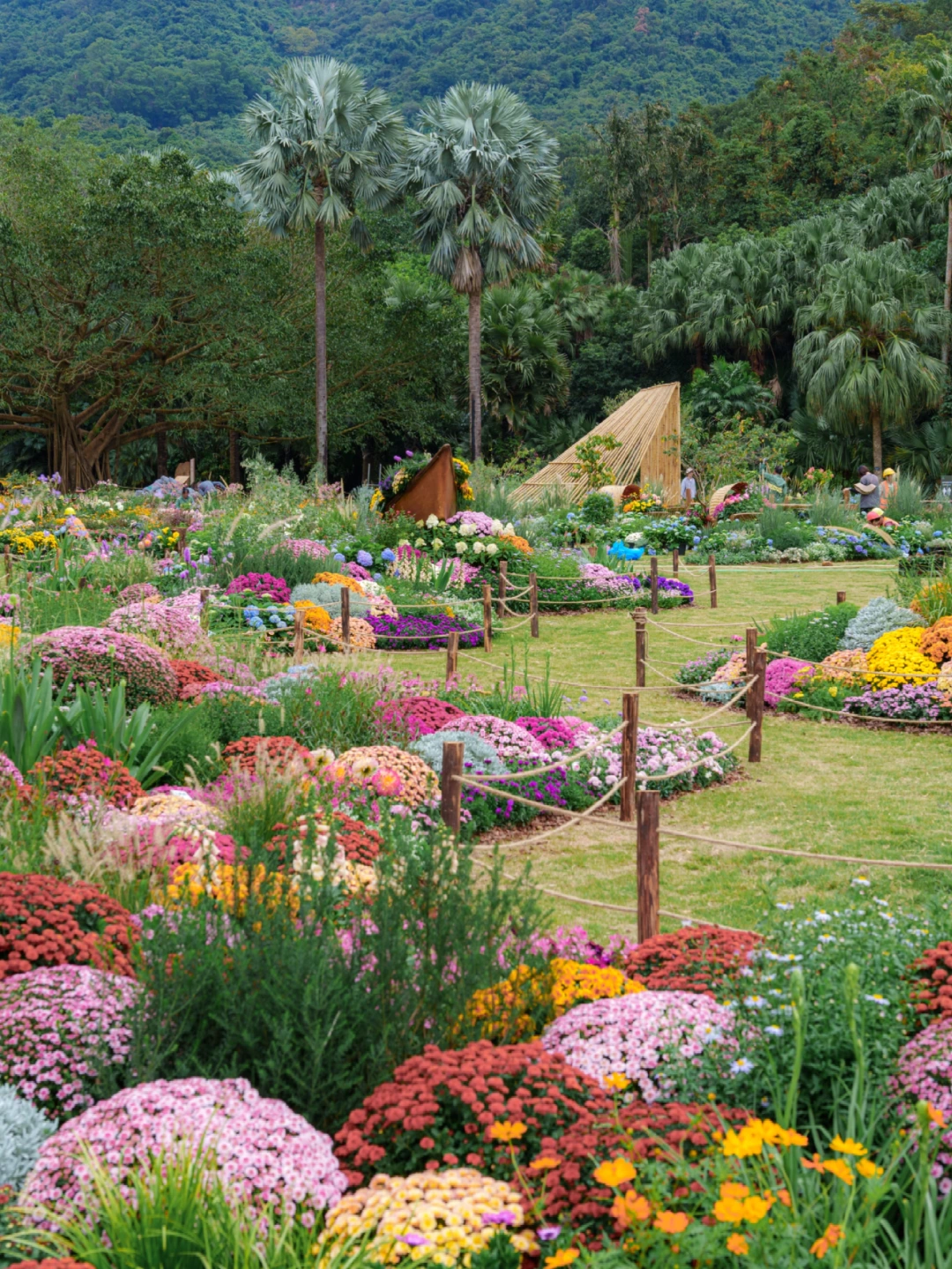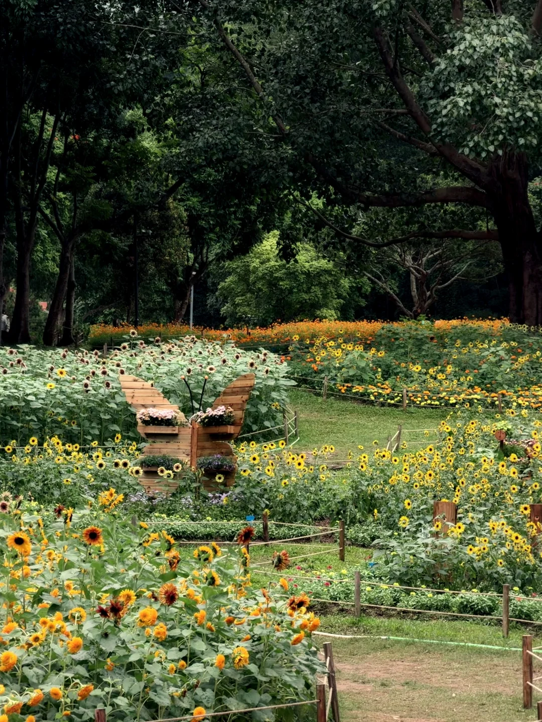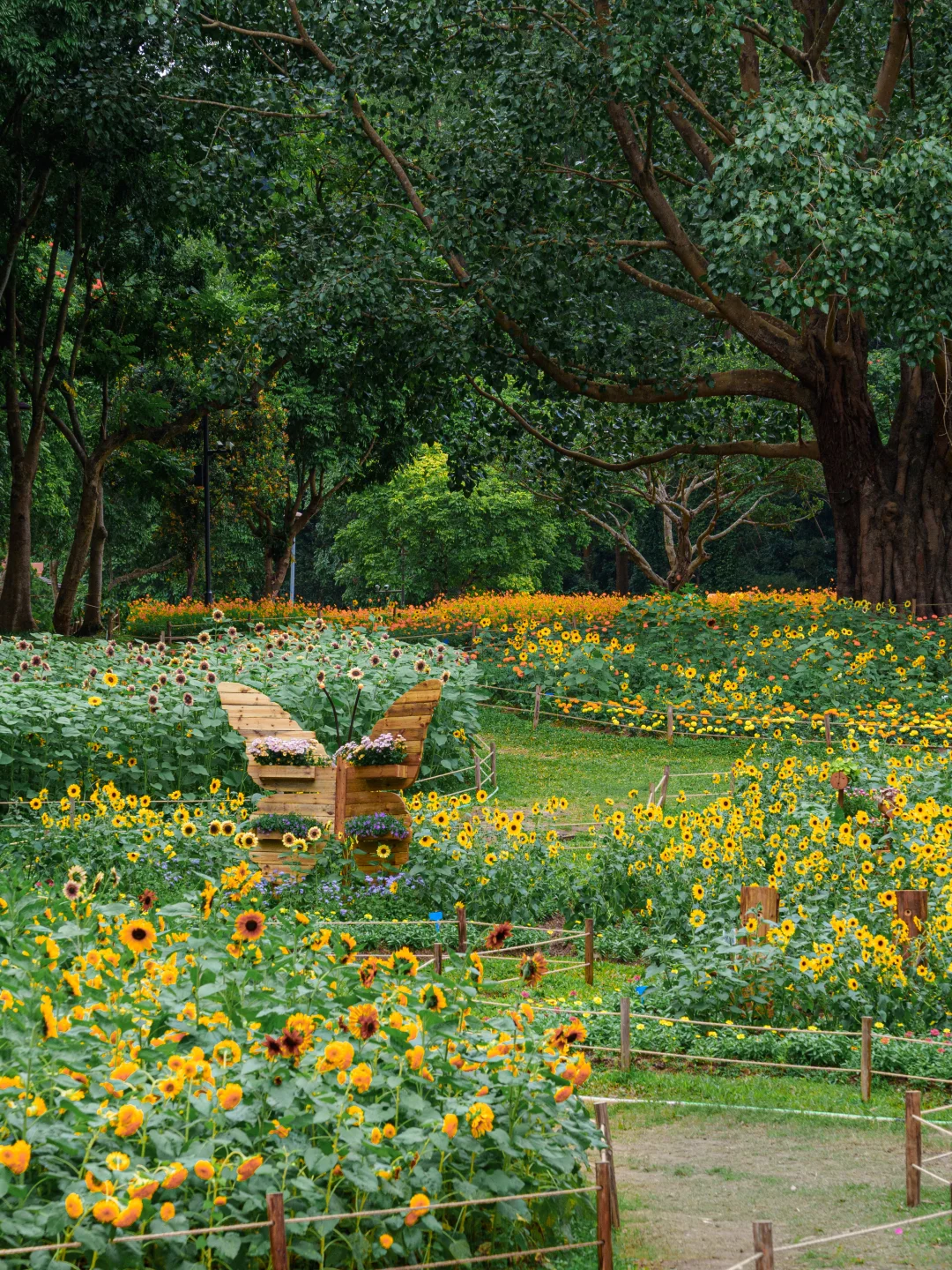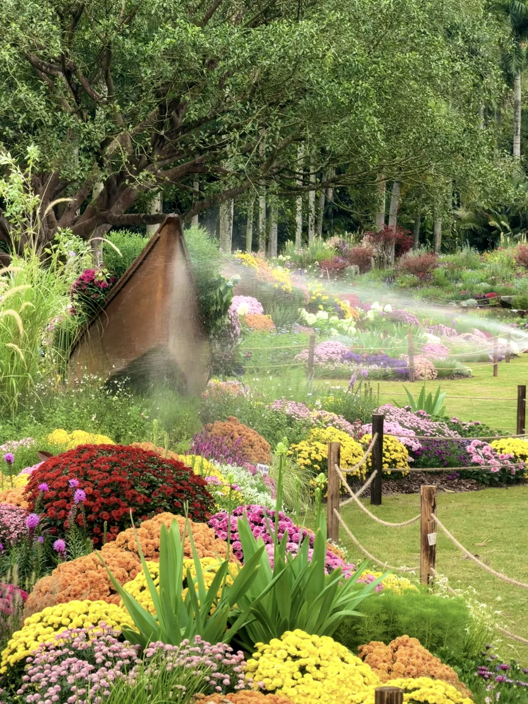 南门坐观光车➟桫椤湖下车➟步行至邓小平手植树区域(花展主展区💐)➟步行到罗汉松园(一整片花海🌼围绕菩提树)➟在罗汉松园坐车继续去其他区域游览或直接返回🔙南门