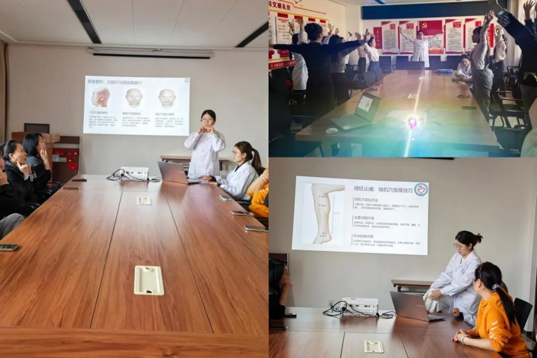 理论宣讲结束后,进入实操教学环节。大家跟着志愿者的节奏认真模仿。随后的中医养生按摩手法教学中,讲师详细讲解穴位定位、按摩力度和频次,演示了缓解关节疼痛、改善睡眠质量的简易按摩手法。