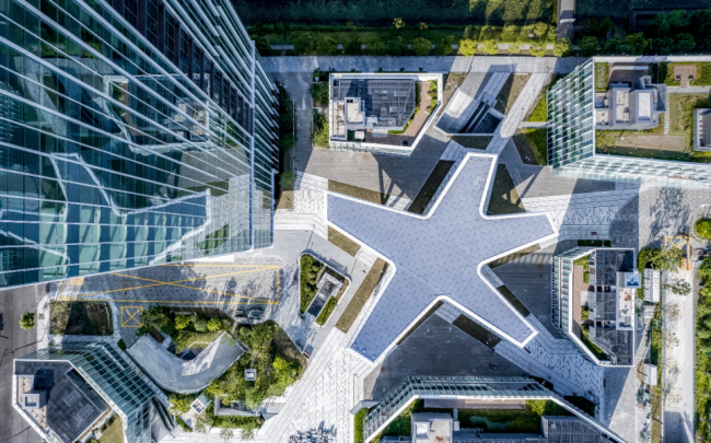 项目坐落于西岸传媒港西侧,文化、媒体娱乐区域的东西轴线之上,旨在将开放的公共共享空间与定位于国际和区域性的创意产业办公空间进行有机结合,形成集社区互动,协作共享、活力创意于一身的标志性的整体地块形象。
