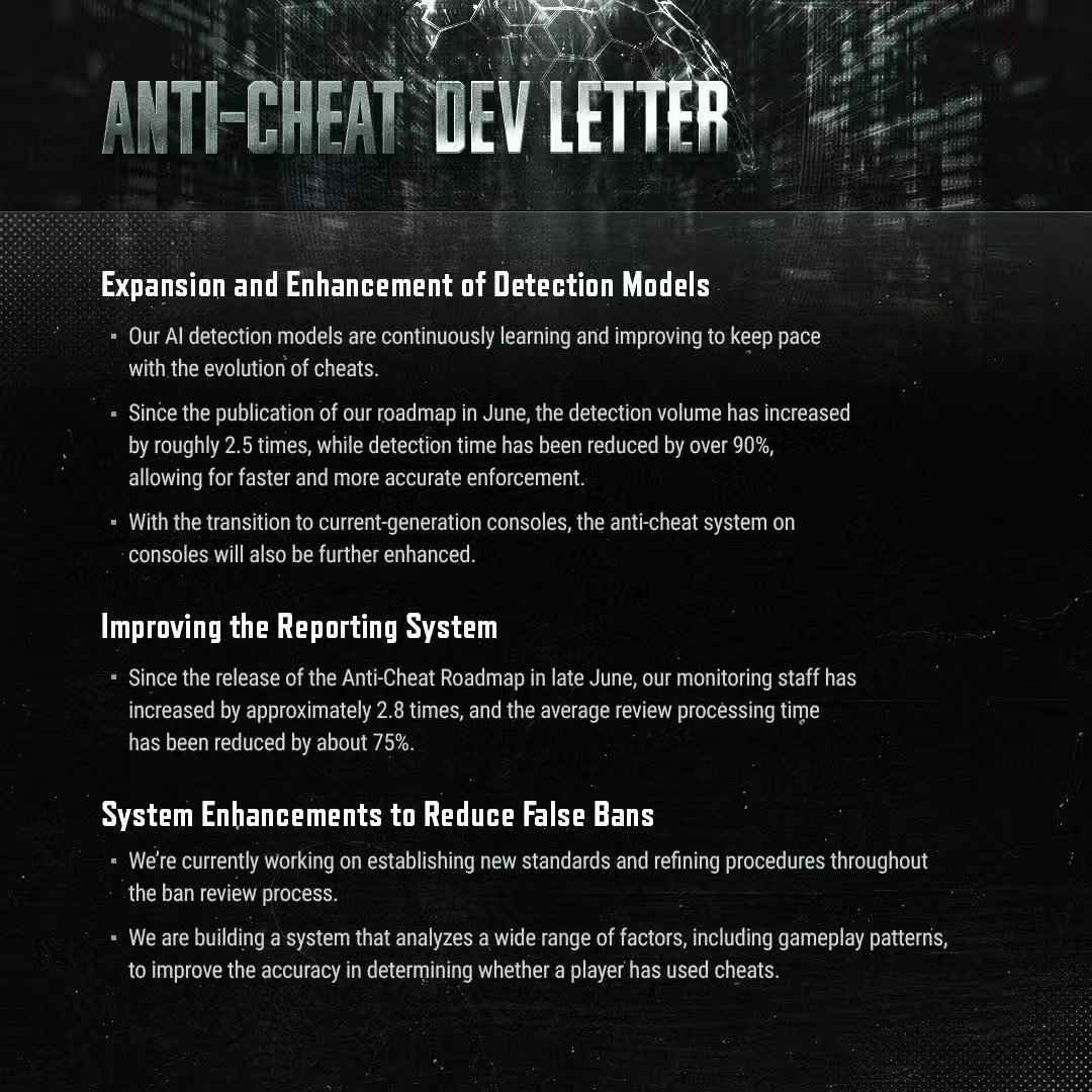 我们正在构建一个分析多种因素(包括游戏行为模式)的系统,以提高判断玩家是否使用作弊工具的准确性。