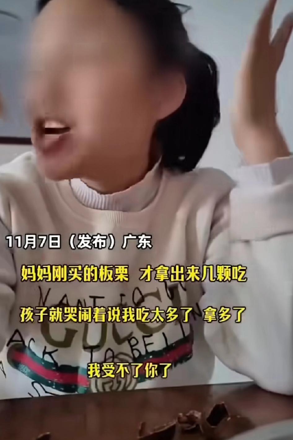 刚买的板栗才拿出来吃了几颗,孩子就哭闹说妈妈吃太多了,妈妈怒吼:受不了了,想吃几颗吃几颗! 比谁训狗训得更好呗?那不是自己的一味纵容才导致今天的结果吗?别把所有责任都推到孩子身上。看到的只有教育失败。都说孩子出生是一张白纸,这么小为什么会这样。