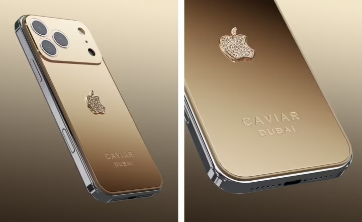 iPhone17Pro(Max)GoldCollection现已在Caviar官网上线。根据不同的型号和存储配置,这批定制机型售价区间为67640美元至88210美元(IT之家注:现汇率约合48万元至62.6万元人民币),每款型号仅限量生产三部。