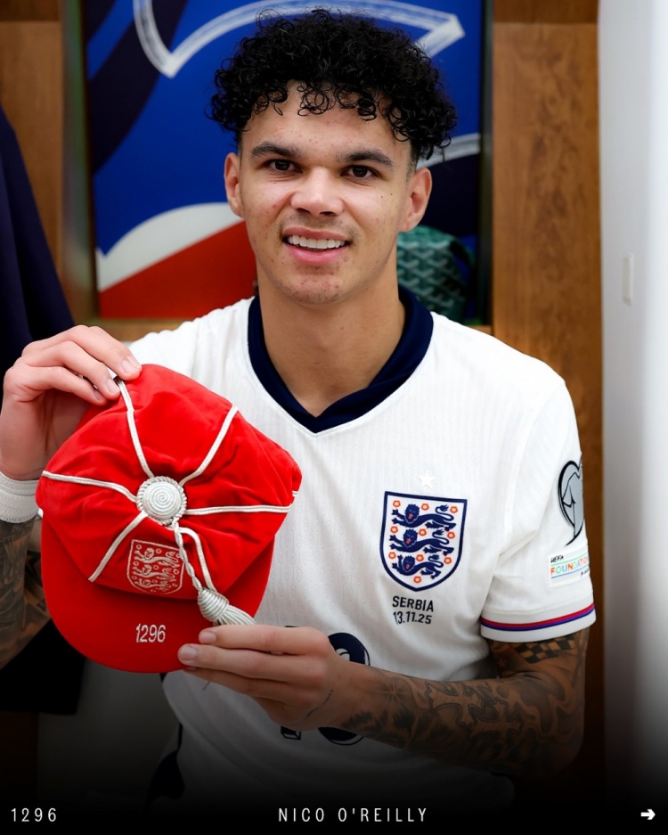 奥赖利是英格兰队史第1296位出场球员,赛后斯通斯在更衣室内为他颁发了纪念帽子。