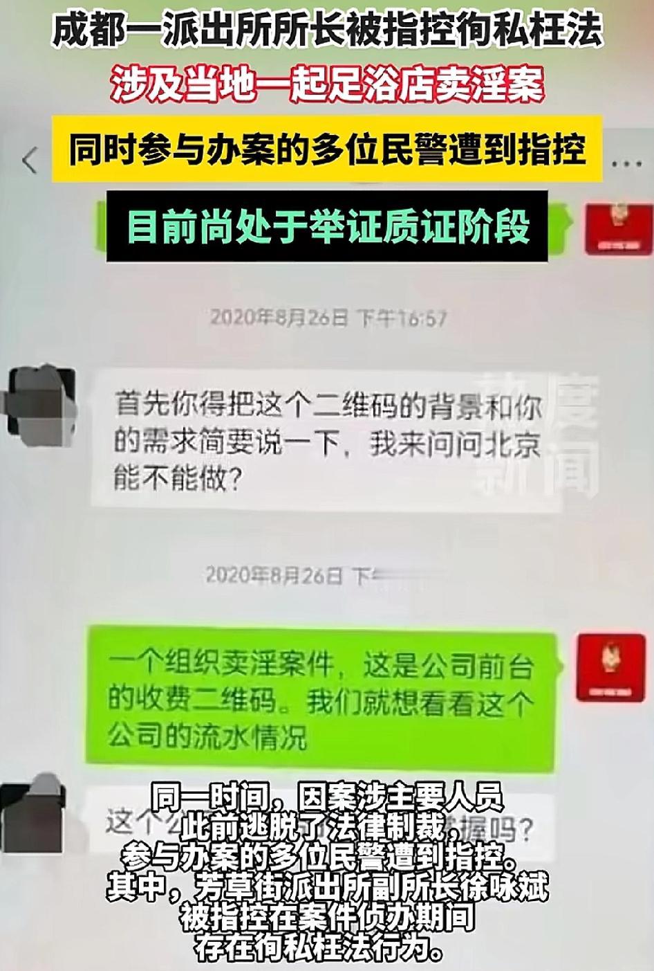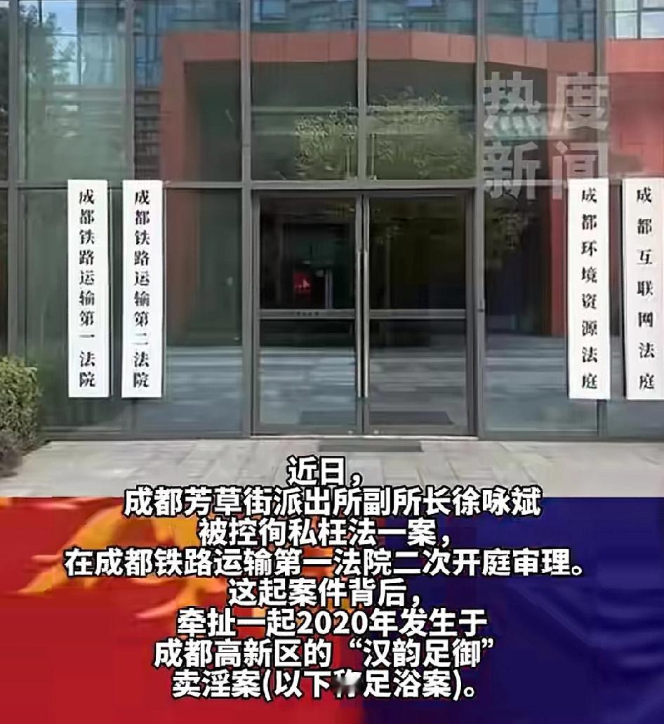 成都最近一个案子,把大家的注意力拉回到几年前的那家“汉韵足御”足浴店。 当时店里因为涉嫌卖淫被查过一轮,涉案人员也判了案,本以为这事早就尘埃落定。结果让人意外的是,这个案子还有后续,而且后续部分相当有冲击力,有人反映当年办案的民警也有问题。 事情的关键点出在2021年。那年一名已经被抓的组织者在看守所里递交了检举材料,直接把矛头指向了幕后老板。 也正是从那份材料开始,案件的方向突然变了,从查嫖娼变成了查办案过程有没有人徇私。 再往后,2023年11月案子正式迎来大转折。几名曾参与侦查的民警被立案调查,其中包括成都芳草街派出所的原副所长徐咏斌。 要知道,副所长这个位置对老百姓来说不算小,平时恐怕也要处理一堆案件,而他现在却成了被告,这种身份反差感让人不适,不过从网友的反应来看都很淡定! 目前案件已经开到二审阶段,法院那边也在反复举证。被告的辩护意见、当年抓捕的过程、检举材料的真假……每一项都要翻出来一条条对。 程序会按法律走,谁有问题查谁,绝不会有人护短。不过网友还关心,这些人还有没有利用职务之便给别的什么人开绿灯?或许从案件处理这么长时间来看,涉及也是相当复杂! 事情发展到现在,已经不是一桩卖淫案了,黄赌毒本就一体,而伞的存在才是最可怕的! 那你怎么看? 欢迎说说你的想法。