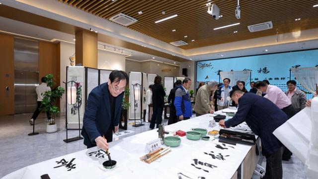 此外,形式上也有所创新,注重展赛融合,举办为期一个月的“琴书和韵”大展,深度融合传统文化元素,为书法大赛预热。金杨文化活动中心一楼大厅变身沉浸式古代书房,居民们可以弹古琴、品香茗、赏字画,体验文人墨客的诗意生活。本次大展已吸引打卡体验的居民近2000人次,以琴会友、以书会友,成为文化新风尚。