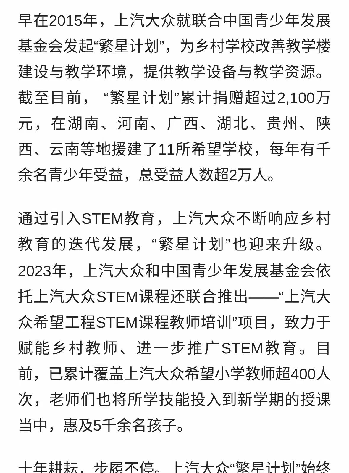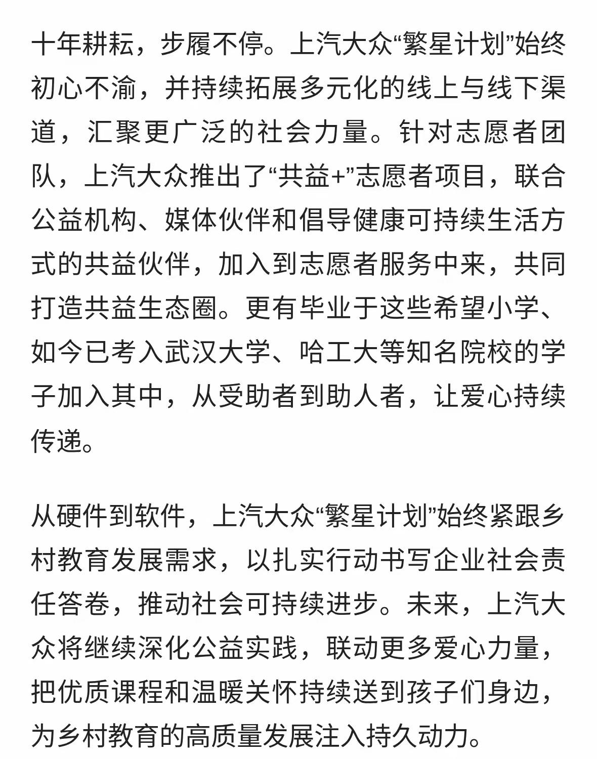 凝聚各方力量践行教育公益 上汽大众“繁星计划”希望小学公益行动走进湖北恩施