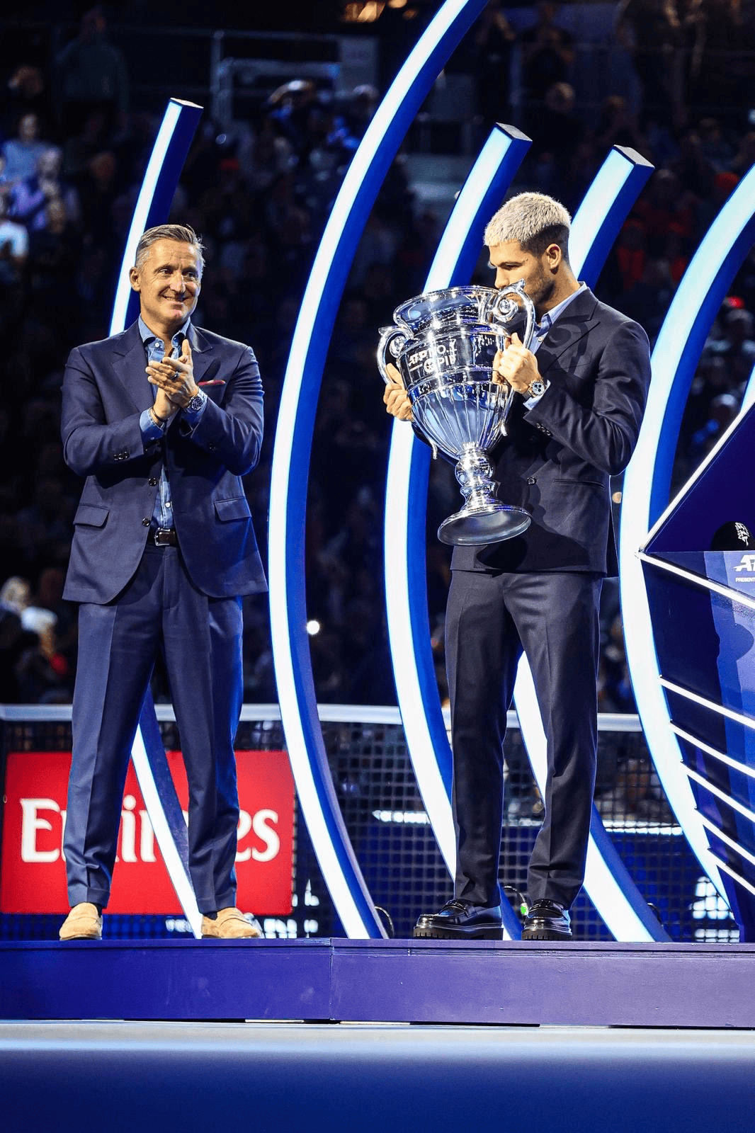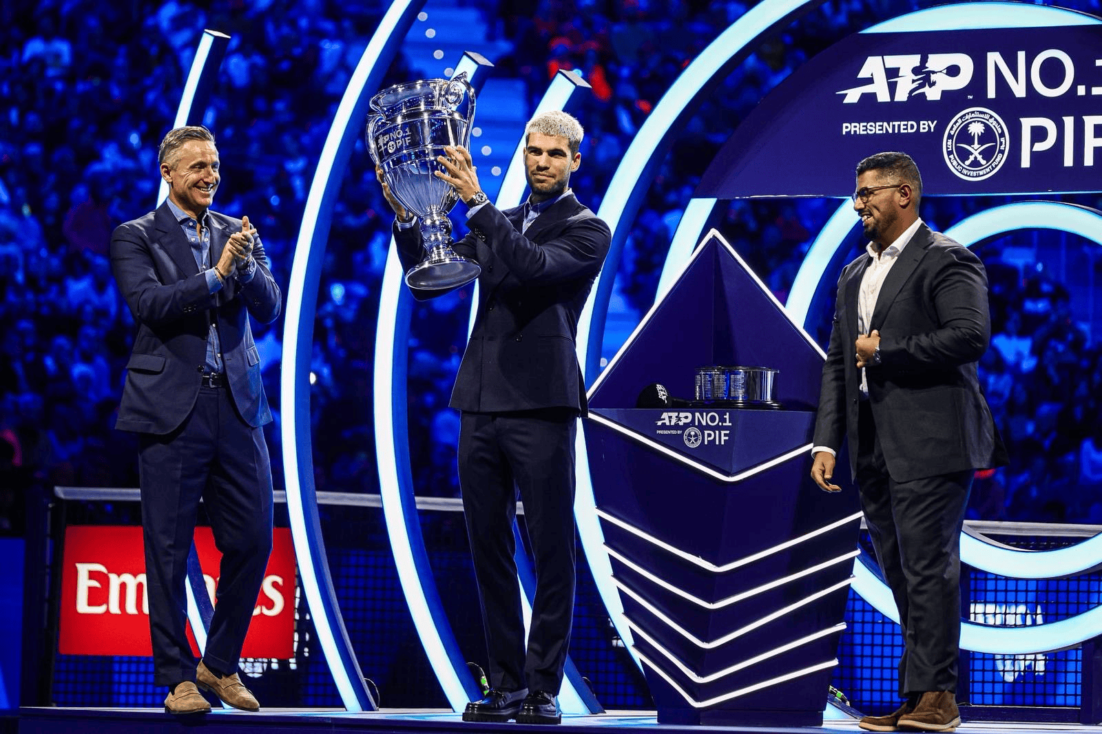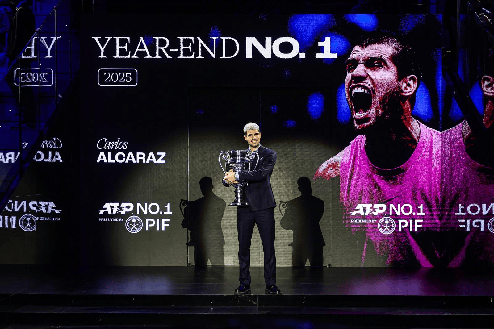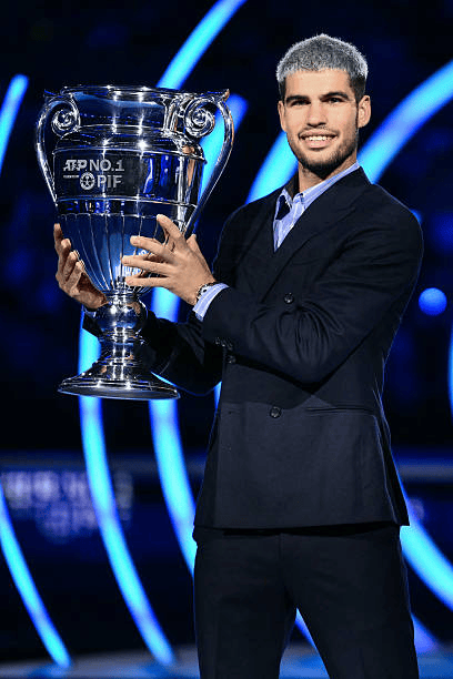 北京时间今晚,阿尔卡拉斯领取了年终世界第一奖杯。这是阿尔卡拉斯继2022年后,再一次登顶年终世界第一。