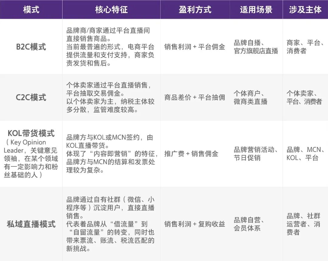 直播电商并非单一的“主播卖货”,而是多种合作模式的集合体。根据交易参与方与收入来源不同,大体可以分为以下几类: