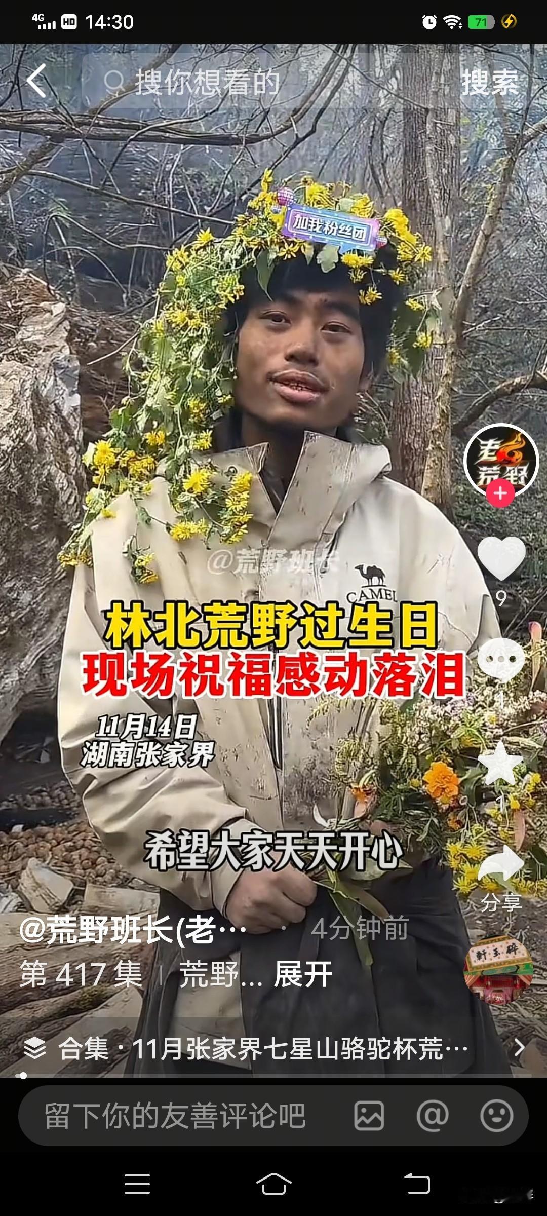 张家界七星山荒野求生第37天,宜宾选手林北(张博林)在张家界山林里过的25岁生日,把网友看哭了。 今天(11月14日)是张家界荒野求生赛的第37天,也是宜宾00后选手林北(张博林)的25岁生日——没有蛋糕蜡烛,只有山林里的野生猕猴桃,却等来了CCTV记者、宜宾高县文旅、叙州文旅的陪伴与祝福。 镜头里的他坐在石头堆上,灰扑扑的外套沾着泥土,被采访时,还能坦然地道:想回家看看,陪父母吃一顿饭,今天虽然是我的生日,却是母亲的受难日,以后希望能常陪伴父母,也愿父母永远健康快乐! 这个在荒野里整天砍柴,像猴儿一样的“孩子”,一提爸妈就红了眼——00后不是“娇生惯养”的标签,他在逆境里攒的勇气,一半是生存的韧劲,一半是想早点回家的温柔。 有人说他是“荒野版靠谱青年”,既能在山林里活成“生存专家”,也没丢了“把父母放心上”的底色。这才是年轻人该有的样子啊——能扛事,更懂珍惜。 在此,小编想说:咱们宜宾的孩子,真的好样的,他用自己在逆境中生存的勇气,给年轻人树立了一个正直又正确的榜样,这一点是值得我们欣赏和学习的。 网眼看宜宾 张家界