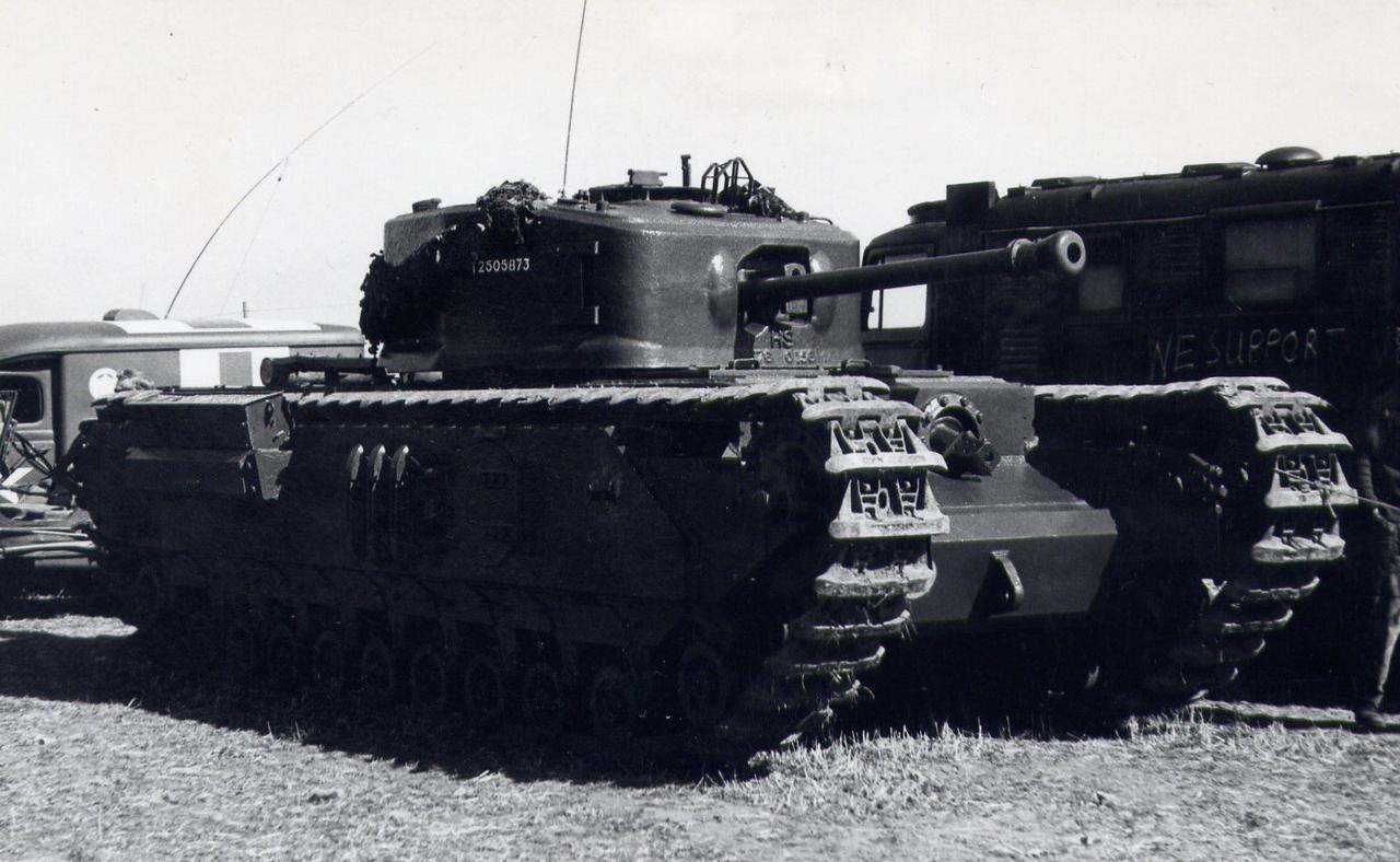 英国人直到这时候还抱残守缺,还在搞什么“步兵坦克”——1944年7月26日,法国,诺曼底,马尔托镇。一辆英军“丘吉尔”步兵坦克停在一处被毁房屋旁。 “丘吉尔”步兵坦克(参见图2)是英国二战时期的主力步兵坦克,以厚重装甲著称(最厚处达152毫米),配备75毫米主炮,常用于支援步兵攻坚。 马尔托是法国诺曼底地区小镇,位于卡昂城南部。