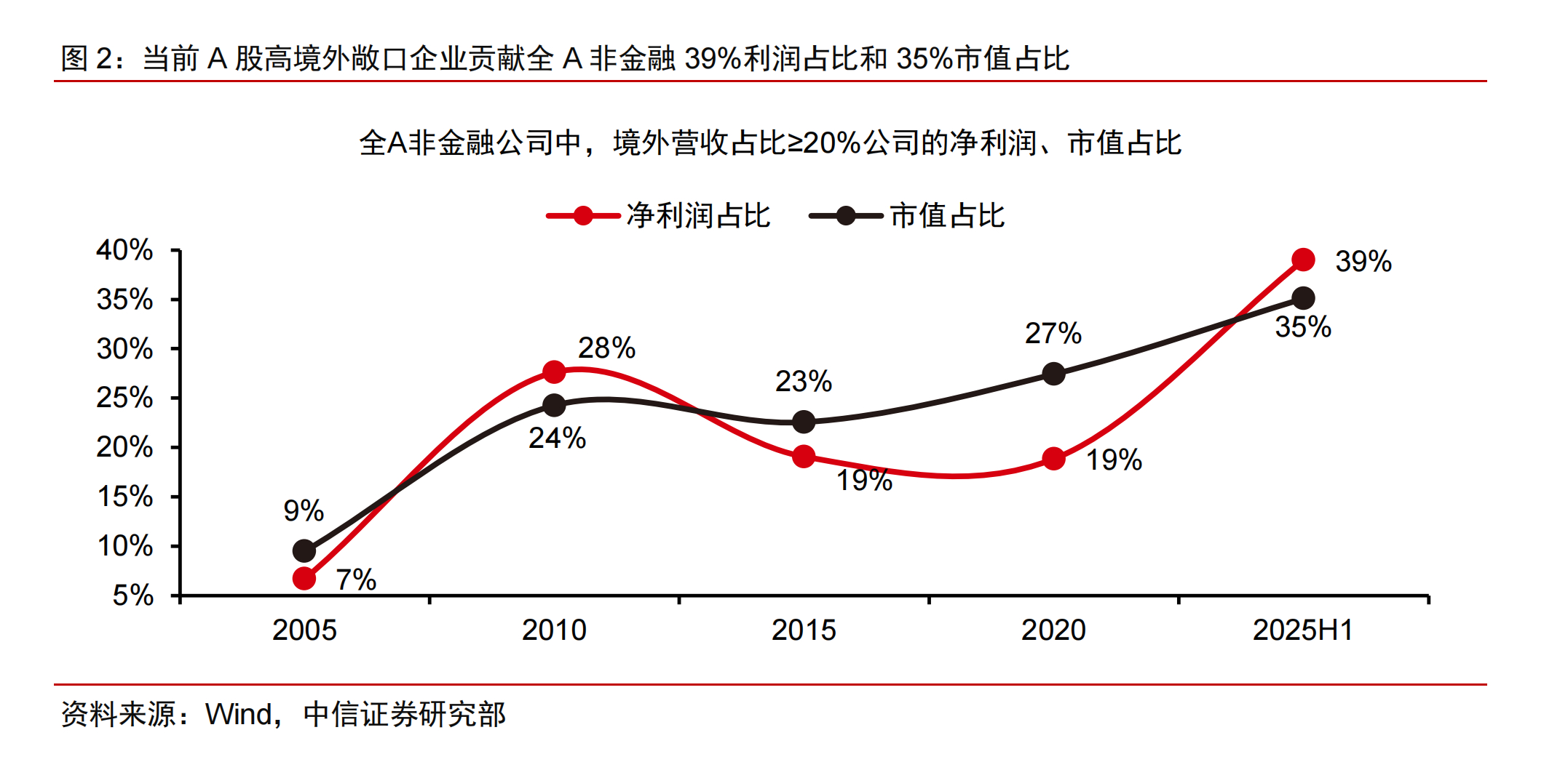 好的企业可能在出海方面更加的积极和深入。看到中信证券的分析,过去 20 年间,中国 A 股制造业公司的海外业务比重明显上升。以市值排名靠前的 30 家制造企业为例,其海外收入占比从 2005 年的 7%提升到 2015 年的 10%,并在 2025 年上半年进一步提高到约 45%。到 2025 年上半年,海外收入占比超过 20% 的企业,已经贡献了全 A(非金融)约 39% 的利润和 35% 的市值;20 年前,这一比例只有不到一成。随着越来越多企业在海外打开市场、形成稳定增长点,