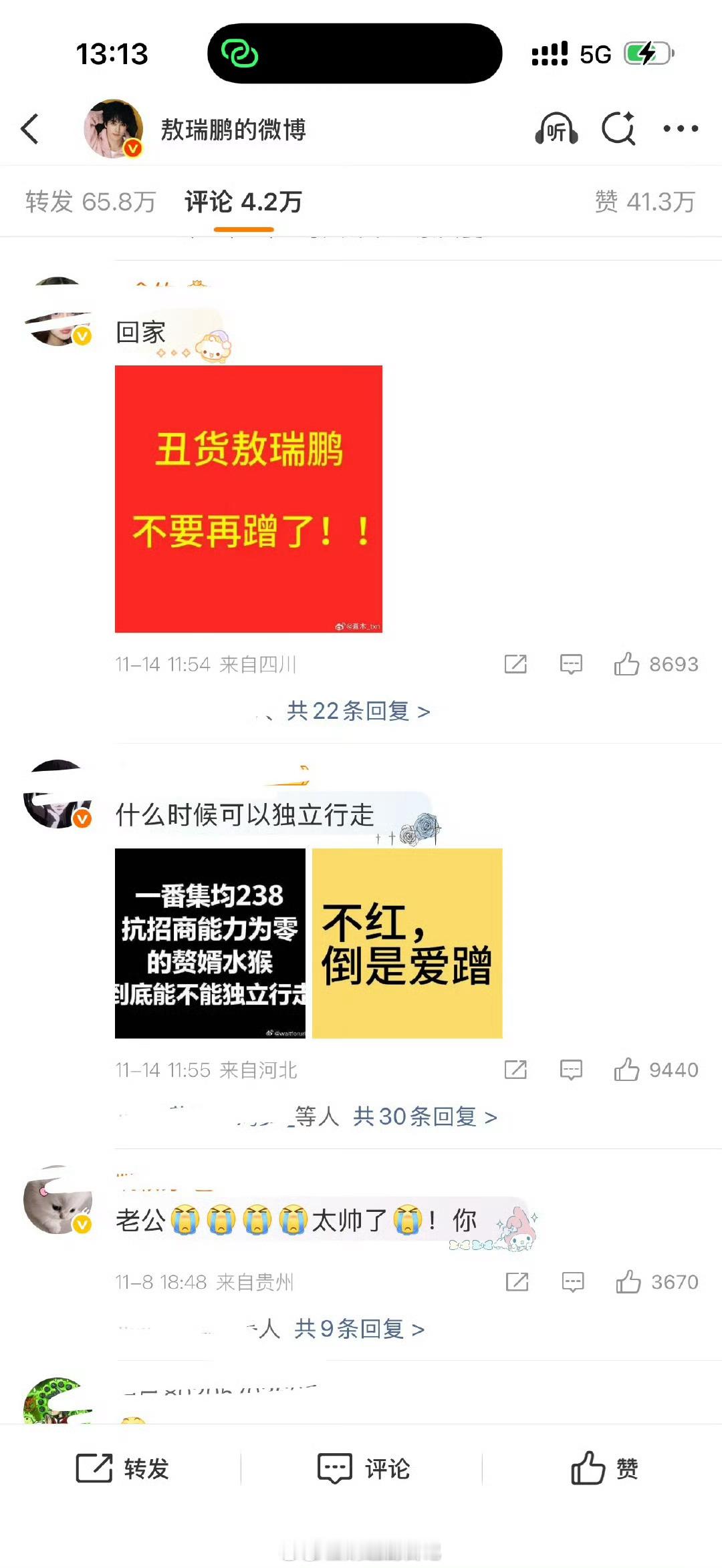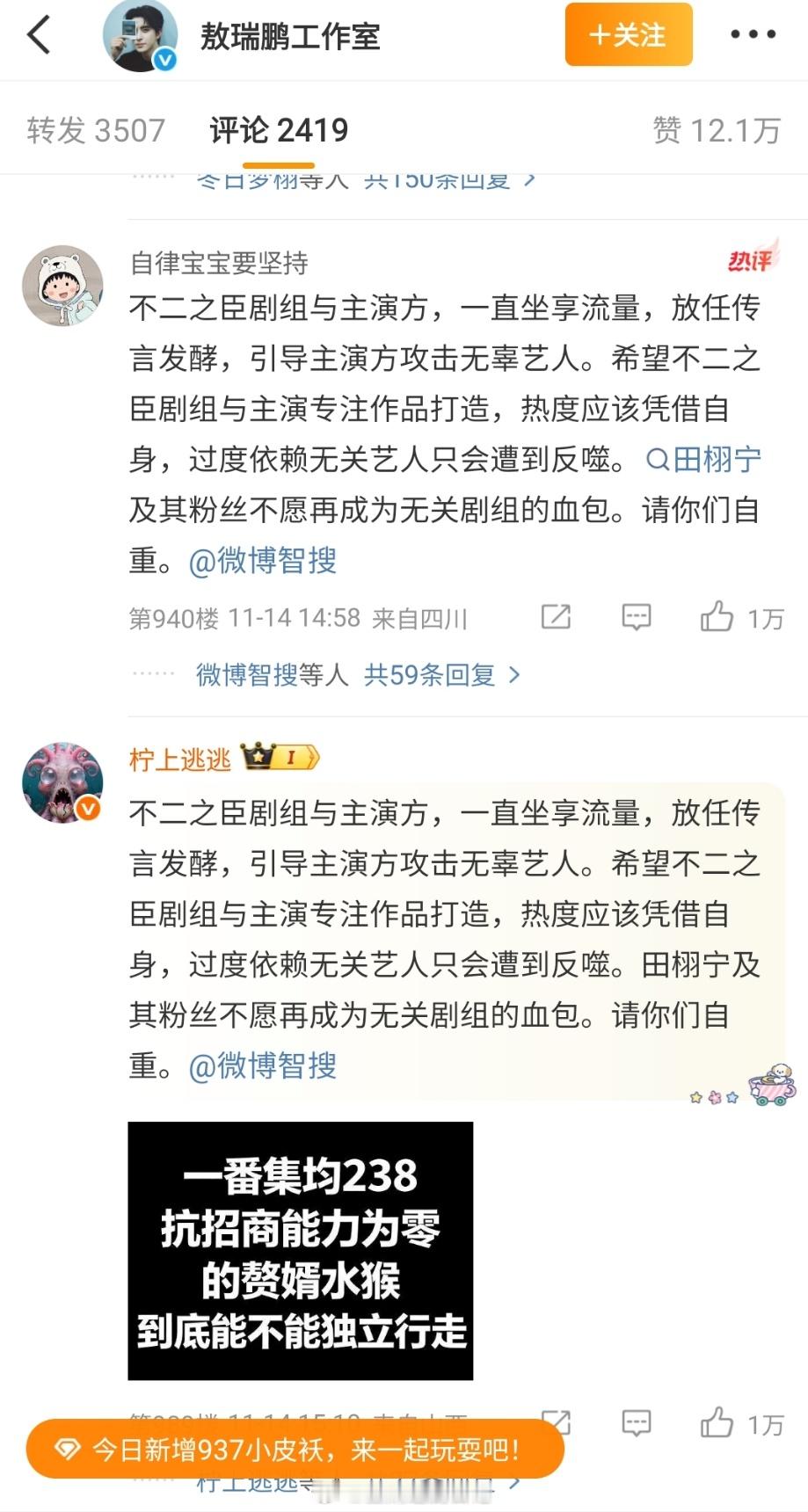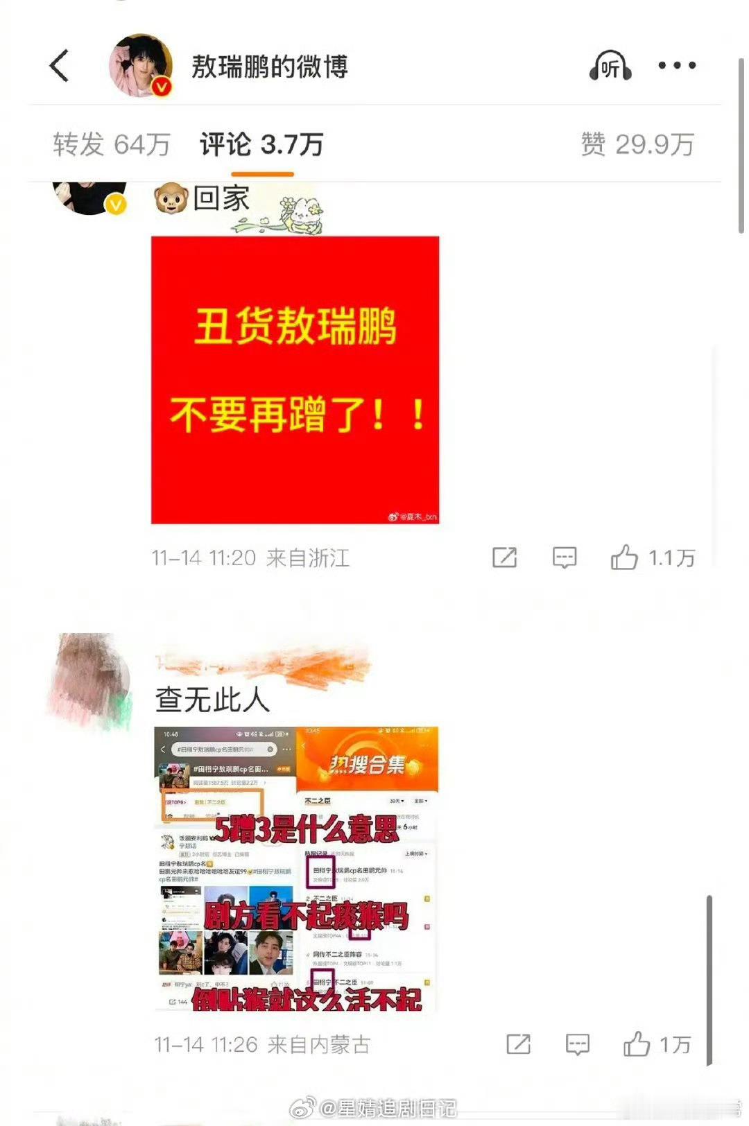 敖瑞鹏工作室前排沦陷了🌚在我看来敖瑞鹏才是无妄之灾,评论区都被冲了…能不能放过敖瑞鹏。