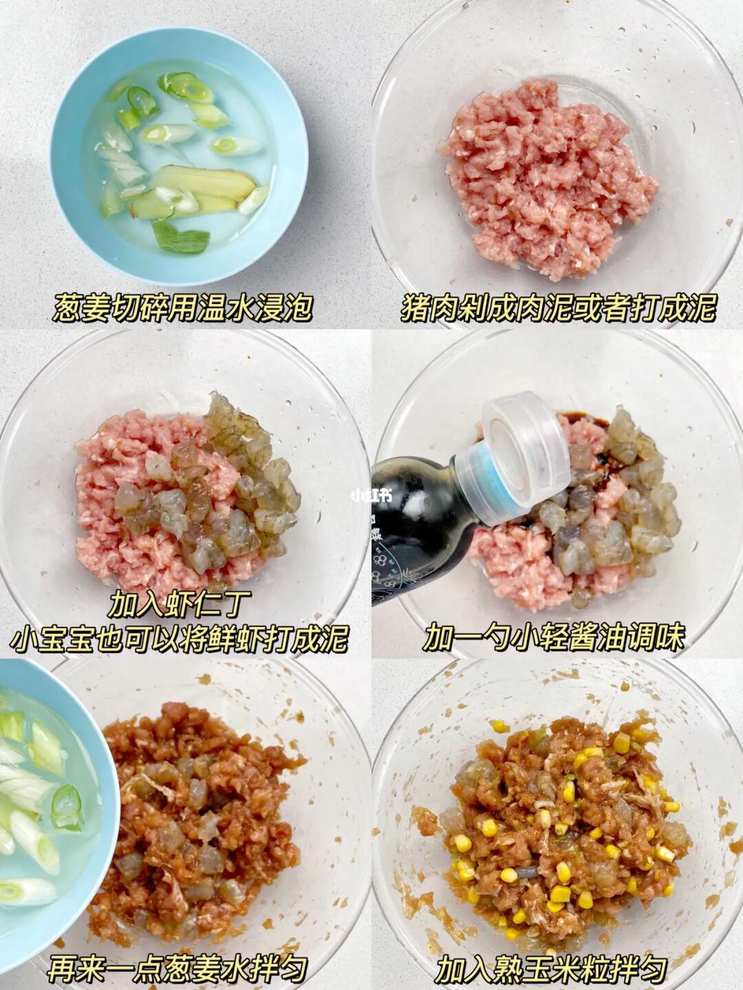 🌈因为是给宝宝吃嘛,所以调味只用到了小轻酱油,葱姜水也是不能省略的,加了之后肉肉不会腥,口感也软嫩。