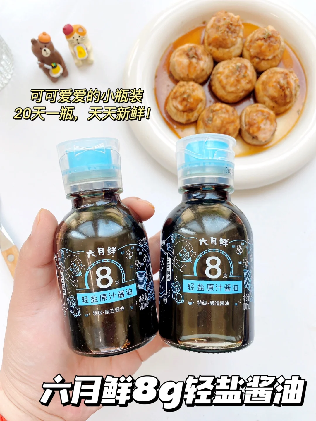 ✨关注我的老粉都知道我们家饮食一直是少盐清淡的,赞赞从小也是很晚才开始添加盐的,所以她吃不惯饭店的饭菜,习惯清淡的口感。❣️给她做菜用的酱油也是每100ml含盐量不超过8g的六月鲜轻盐酱油。原汁酿造,配料干净简单,没有多余的添加剂,宝宝吃了更放心。❣️今年出了100ml的小包装深得我心,可可爱爱的一小瓶,携带方便又适合宝宝的用量,20天左右就吃完了,口口新鲜。